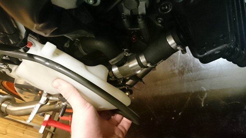 Zudem habe ich noch den Thermostat zwecks besserem Durchfluss entfernt und mir einen entsprechenden Adapter geschnitzt (50g leichter).