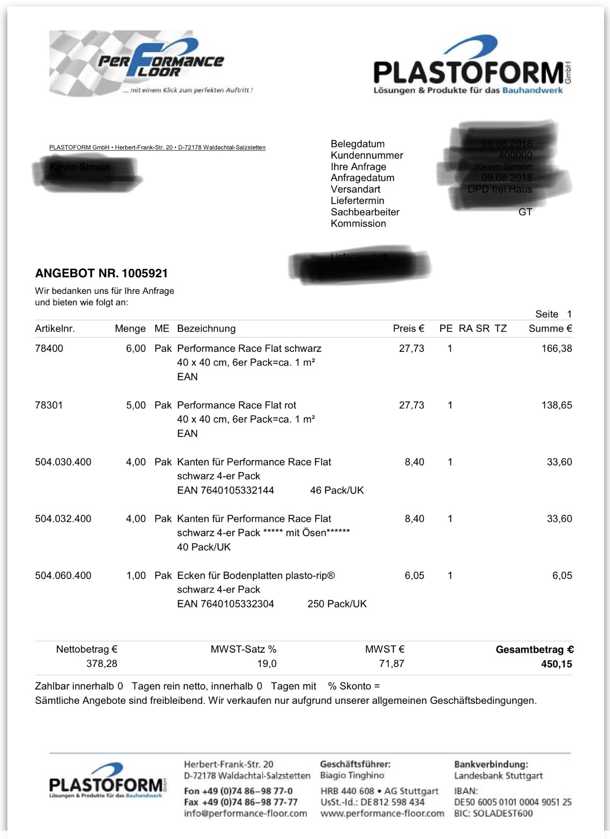 Habe eine Anfrage für einen 3x3 m Boden gestellt und dieses Schnäppchen bekommen