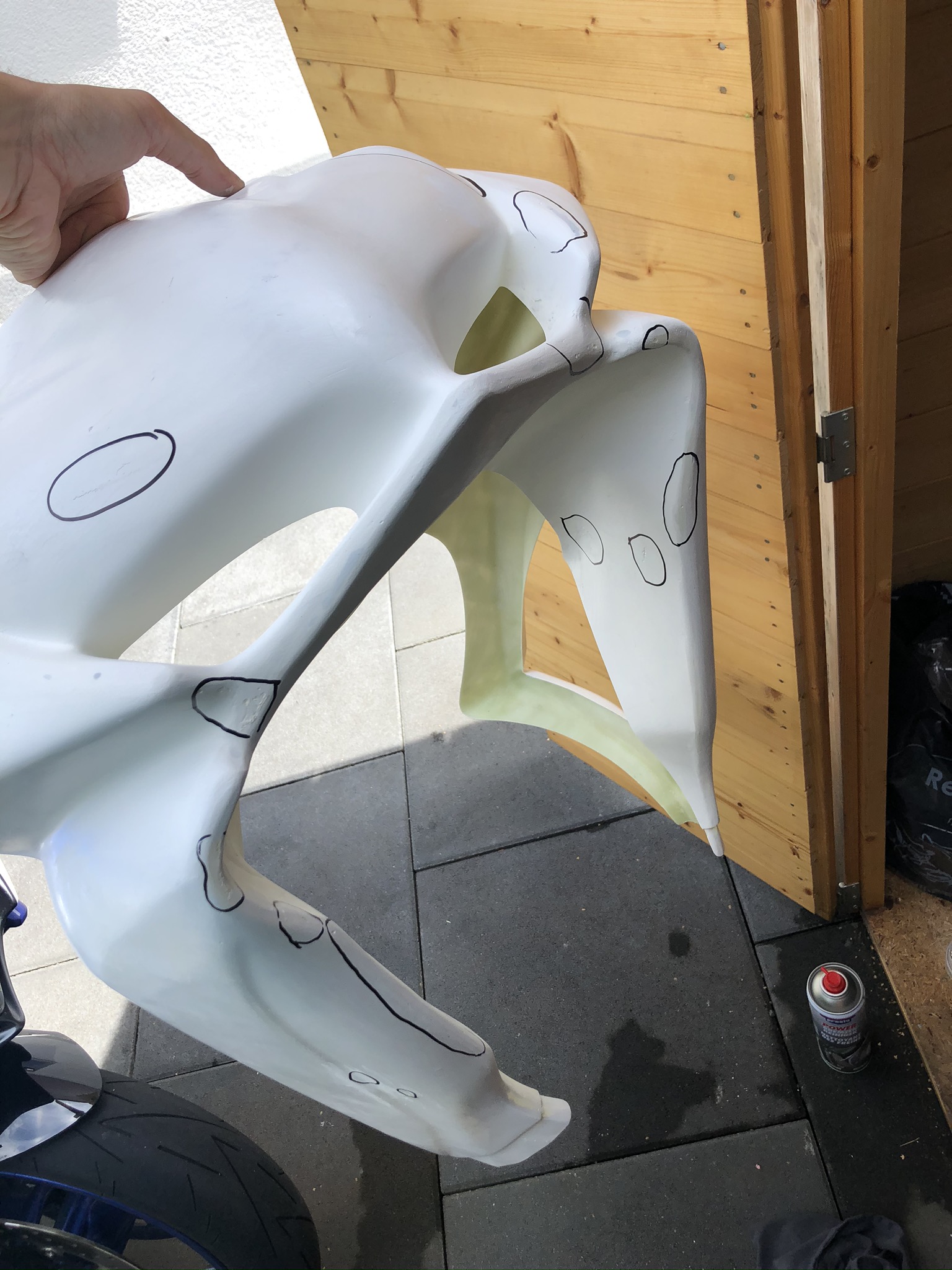 War letztes Wochenende einiges an Spachtel und Schleifarbeit. Nun doch noch ein paar Dosen Grundierfüller bestellt damit es dann schlussendlich hoffentlich halbwegs ok aussieht. Mein Anfänglicher Plan nur mit normalen Kunststoffprimer ohne zu Füllern zu lackieren habe ich aber übern haufen geworfern