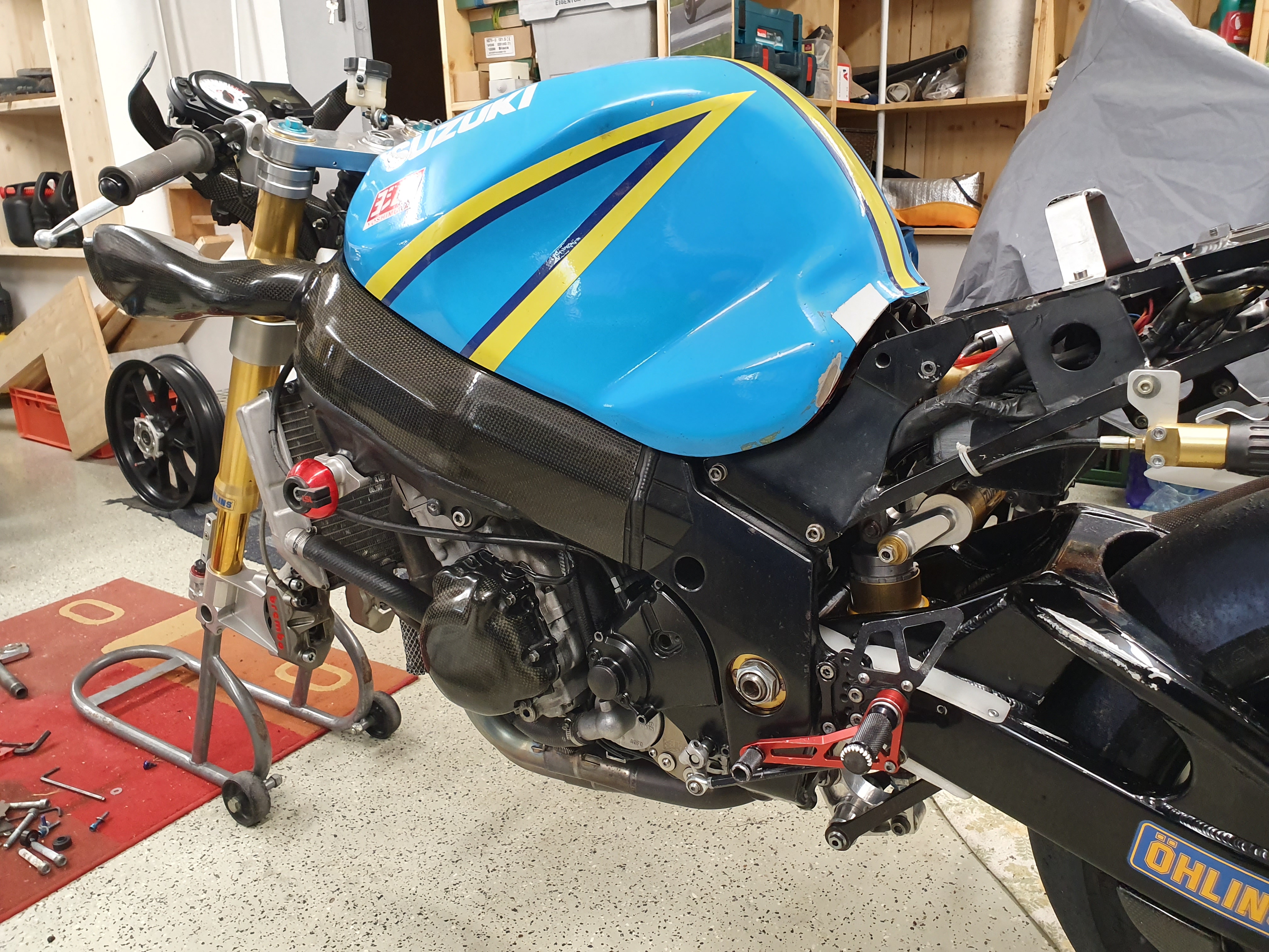Im März 2020 als "Corona-Langeweile Aufbau Projekt" gestartet, aber durch die miese Ersatzteilversorgung hat sich das ganze bis Ende ´20 gezogen. Das Mopped war 2012 in der Battle verunfallt und stand seitdem mit nur 2.500Km auf der Uhr in der Ecke eines Kumpels