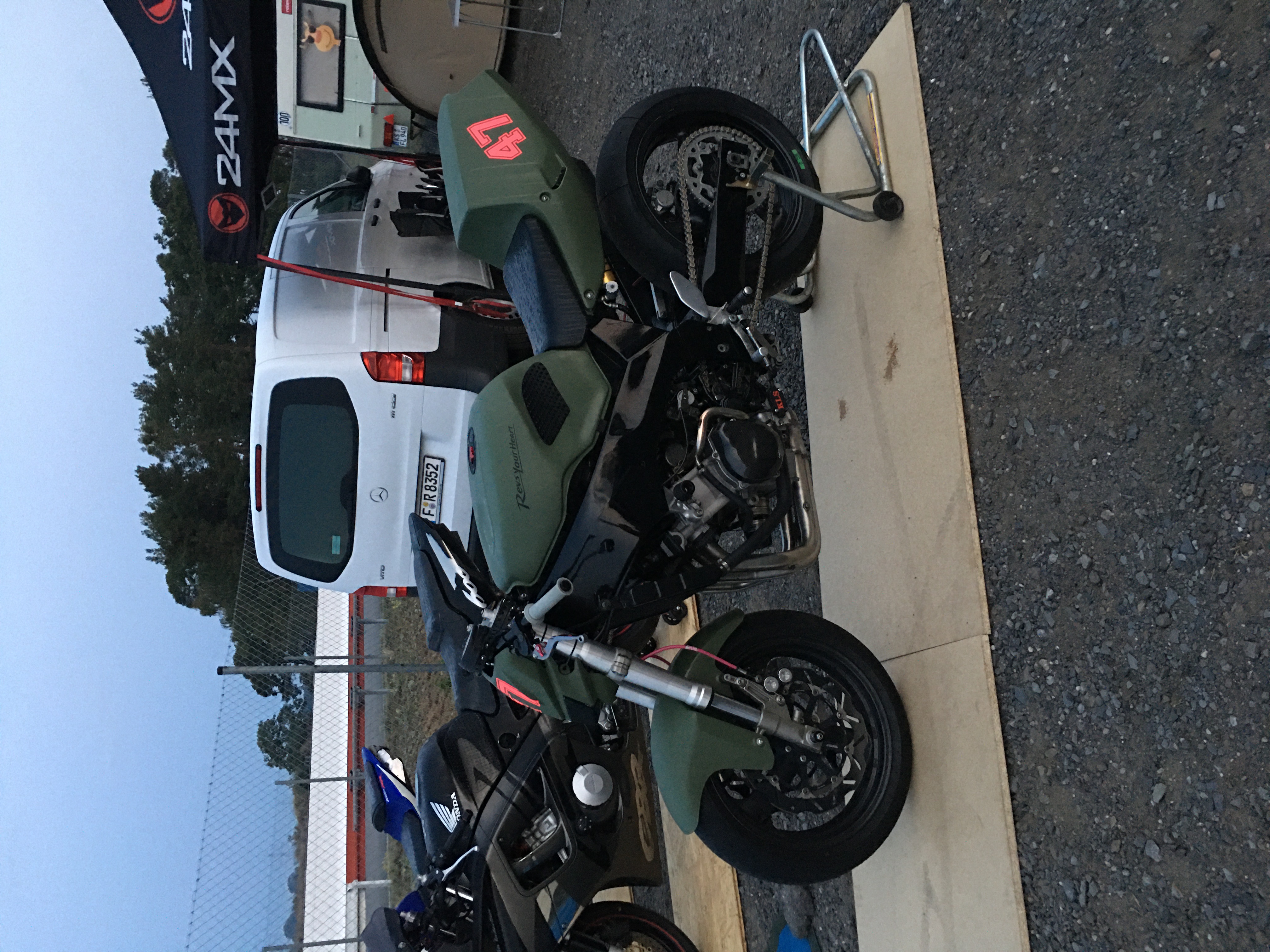Dazu kommen Schutzausrüstung und da meine ich das billige Zeugs was halbwegs aussieht sondern wenigsten irgendwas was SAS Standart hat. Reifenwärmer Ständer etc. dann ein Transportmittel für das Moped