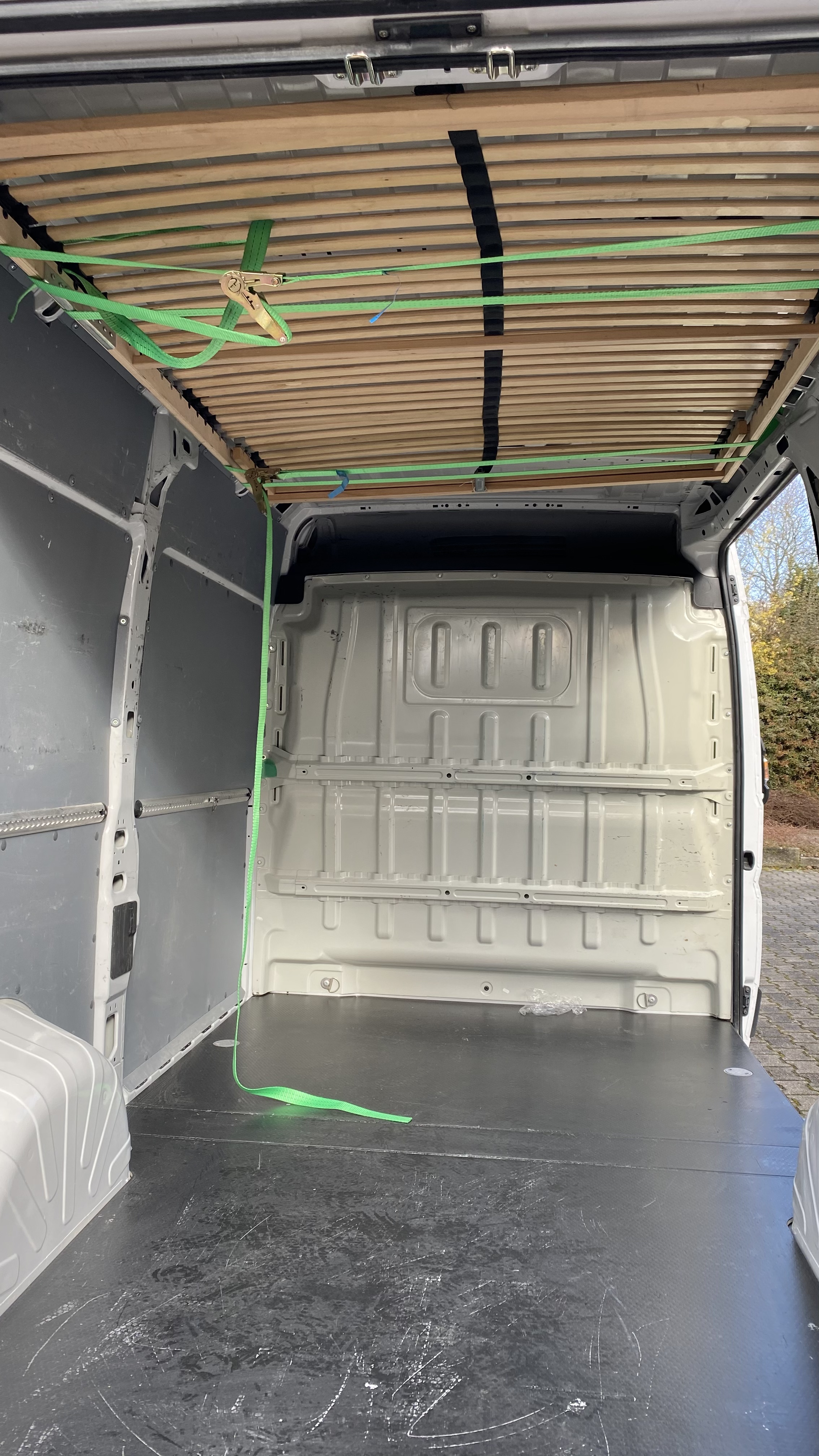 Warum macht Ihr nicht das Lattenrost mit Matratze unters Dach? So habe ich es vor. Auf dem Bild ist aber noch nicht die Finale Lösung. Das war nur ein erster Test