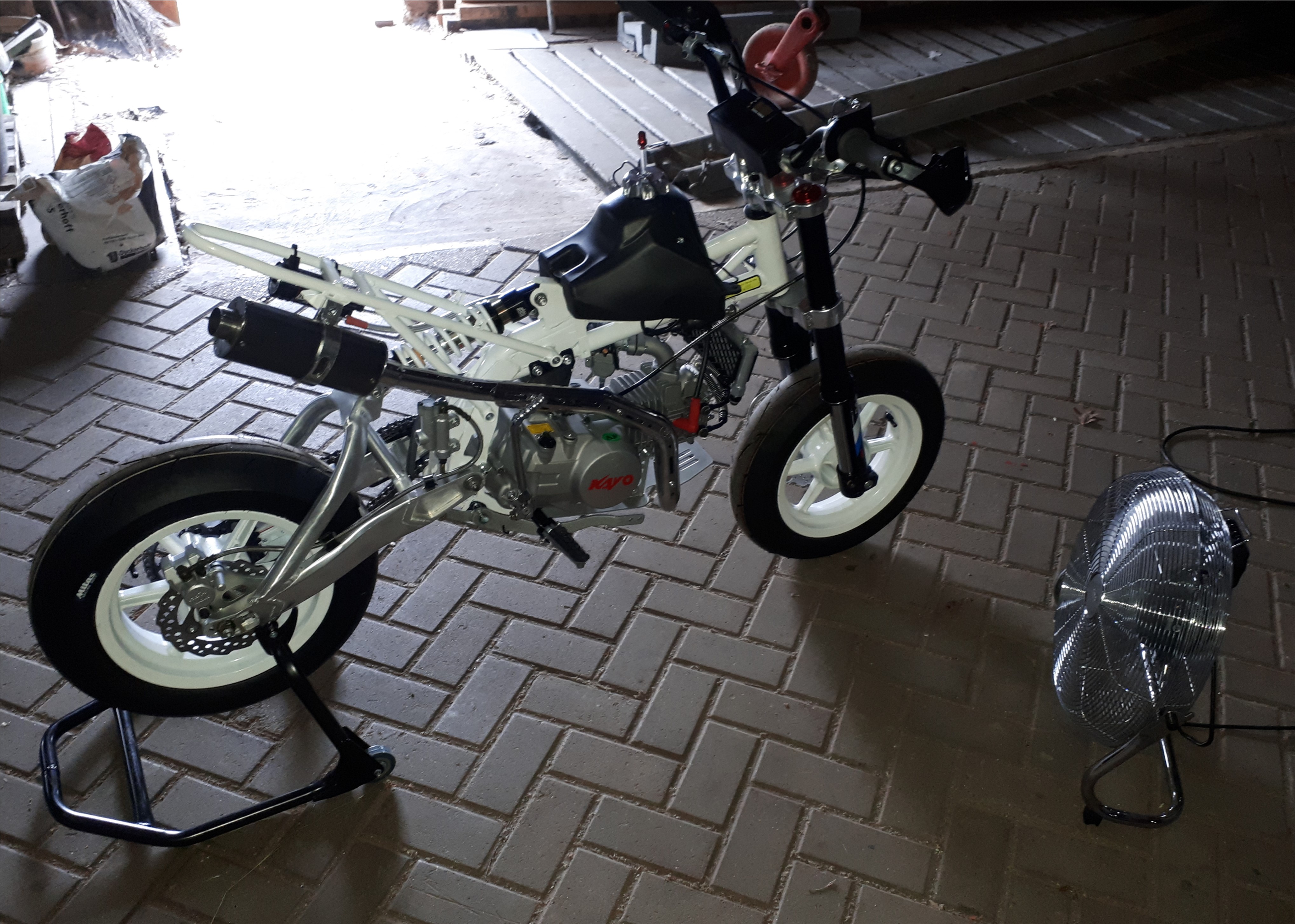 Abstimmung ist definitiv noch absoluter Murx, aber da kommt eh noch ein Mikuni VM26 drauf, ich muss aber zugeben für soein Minimofa zieht das ding ganz ordentlich!