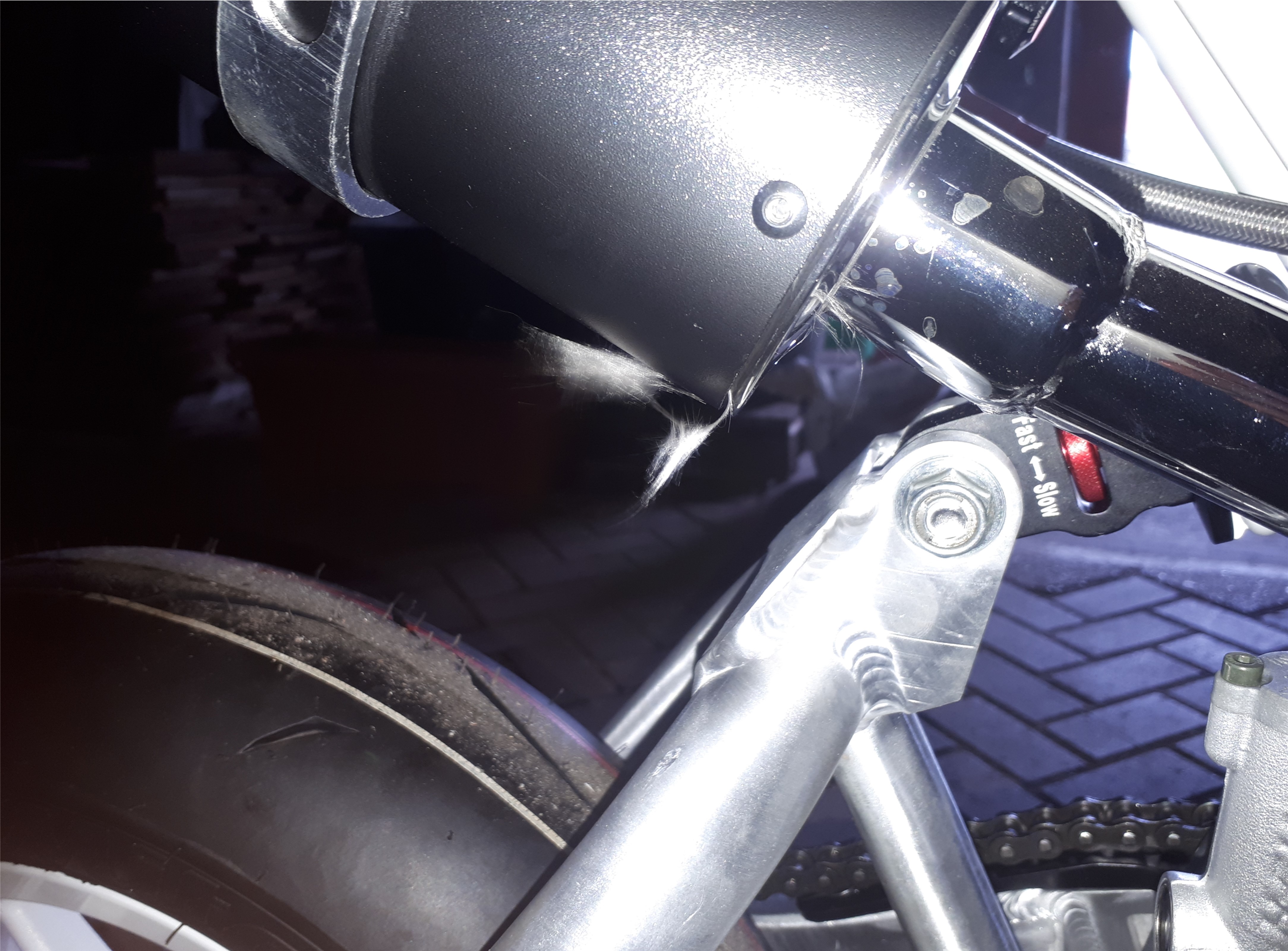 Schon nach den ersten Gasstößen kam aber ordentlich Dämmwolle aus dem Endschalldämpfer...