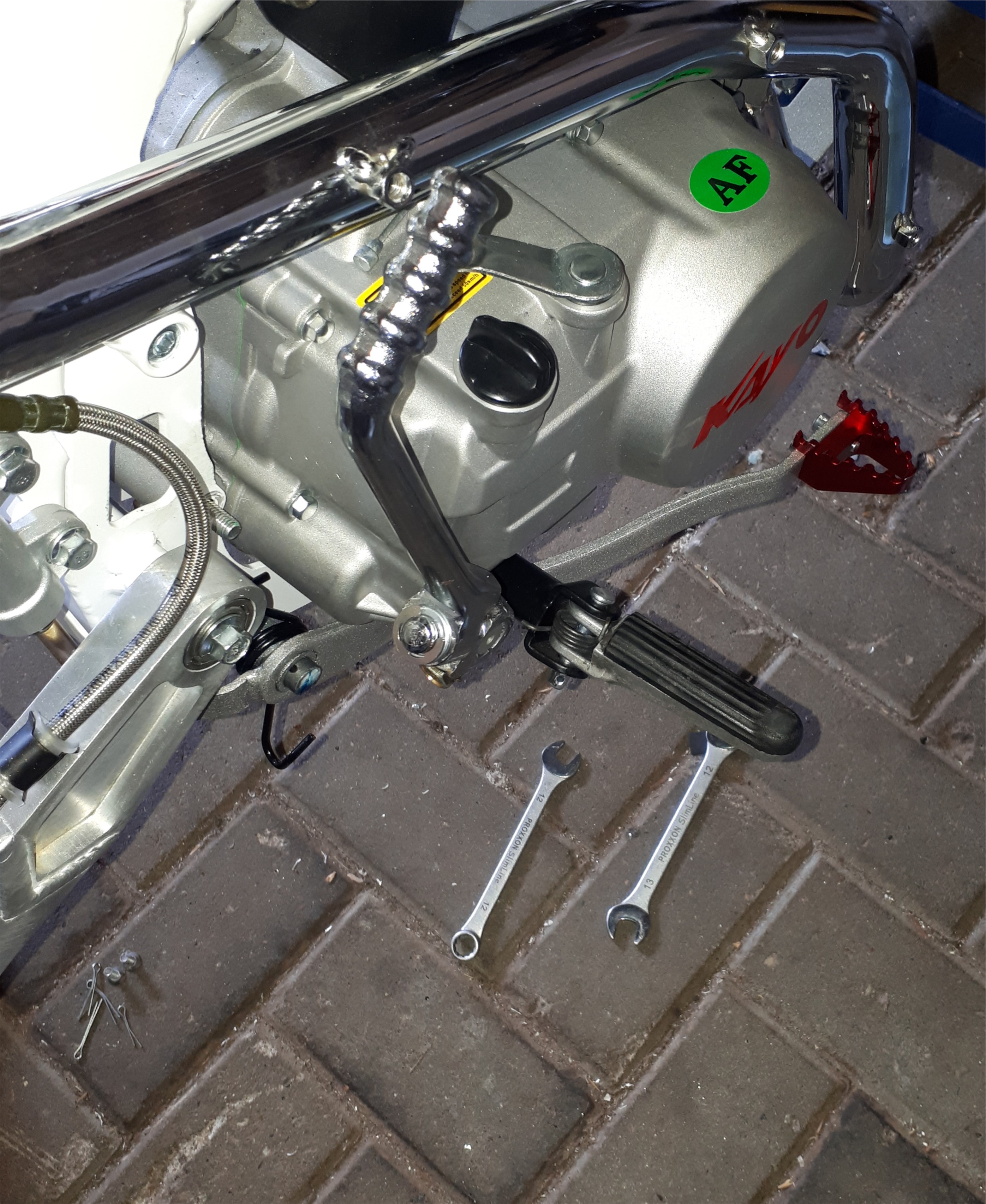 Die Kickstarterwelle hatte aber auch abnormal viel Axialspiel, die habe ich also auch mit entsprechenden Distanzscheiben ausdistanziert, insgesamt 2mm musste ich zwischenlegen um etwas Restspiel zu behalten, bei 2,5mm war mit das dann doch zu stramm.