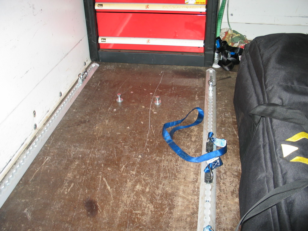 mit zwei M10 Schrauben befestigen. Die Airline-Schienen am Boden sind geklebt und alle 15cm