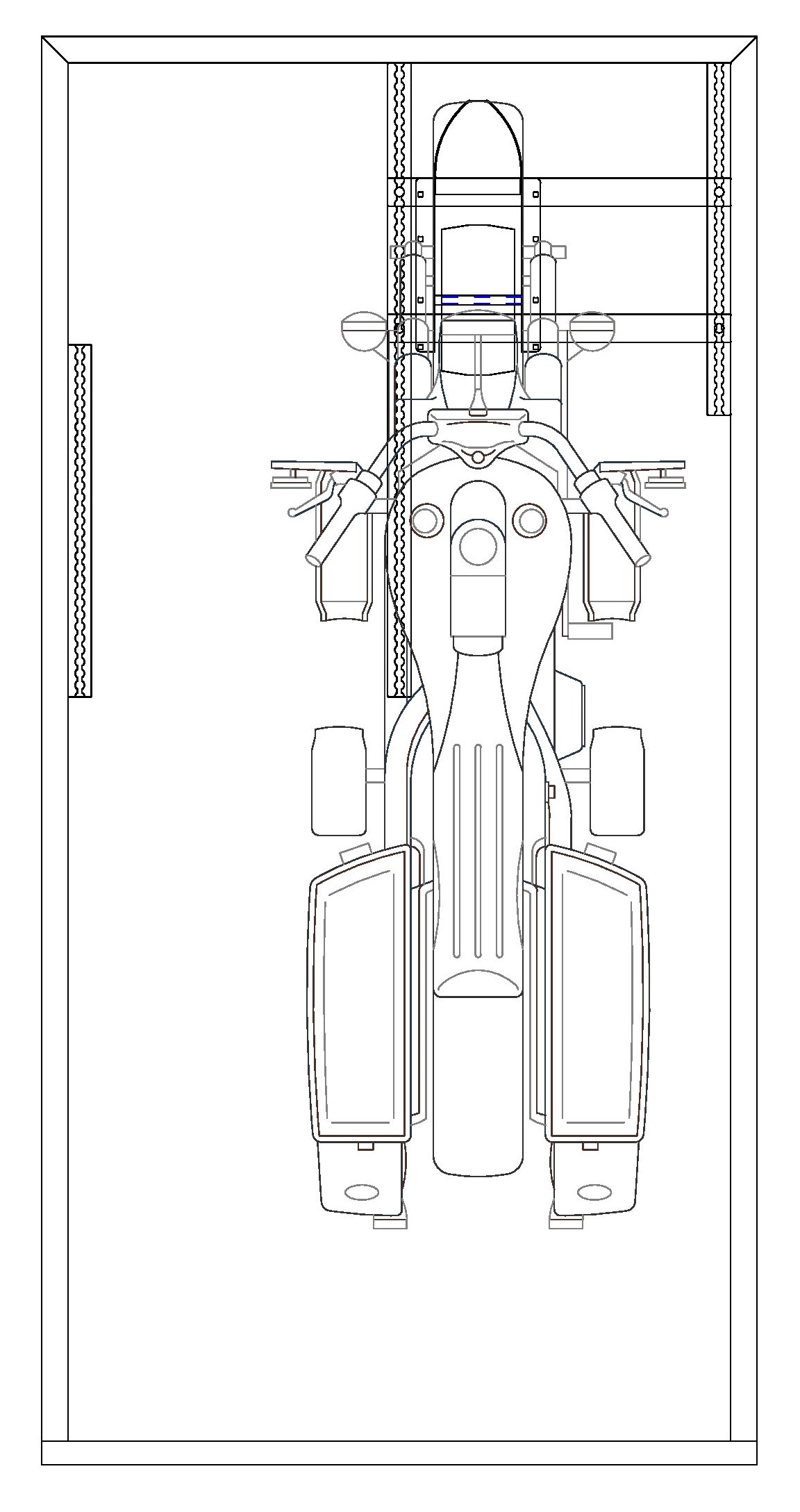 Hatte ich mir mal ausgedacht, weil die hinteren Wippen immer im Weg waren für die vorderen Motorräder, hat sich absolut bewährt in den letzten 25 Jahren. Wippe versetzen wenn man mal einen Kackstuhl transportiert, bedeutet nur zwei neue Löcher, kann man auch mit Gummistopfen o.ä. verschliessen.