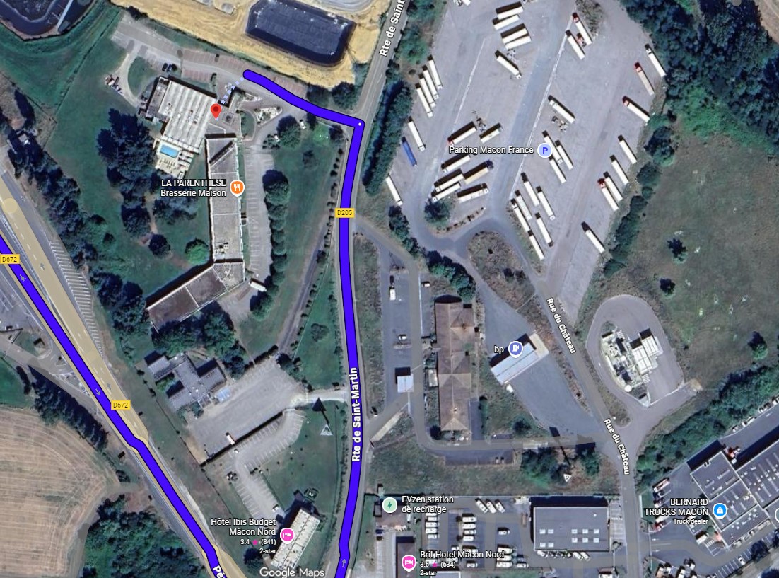 Nur zwei Minuten von der Autobahn entfernt, sauber, modern, nachts verschlossen und direkt nebenan eine Tanke mit "normalen" französischen Preisen. Einkaufszentrum und Restaurants 5 Minuten fußläufig.