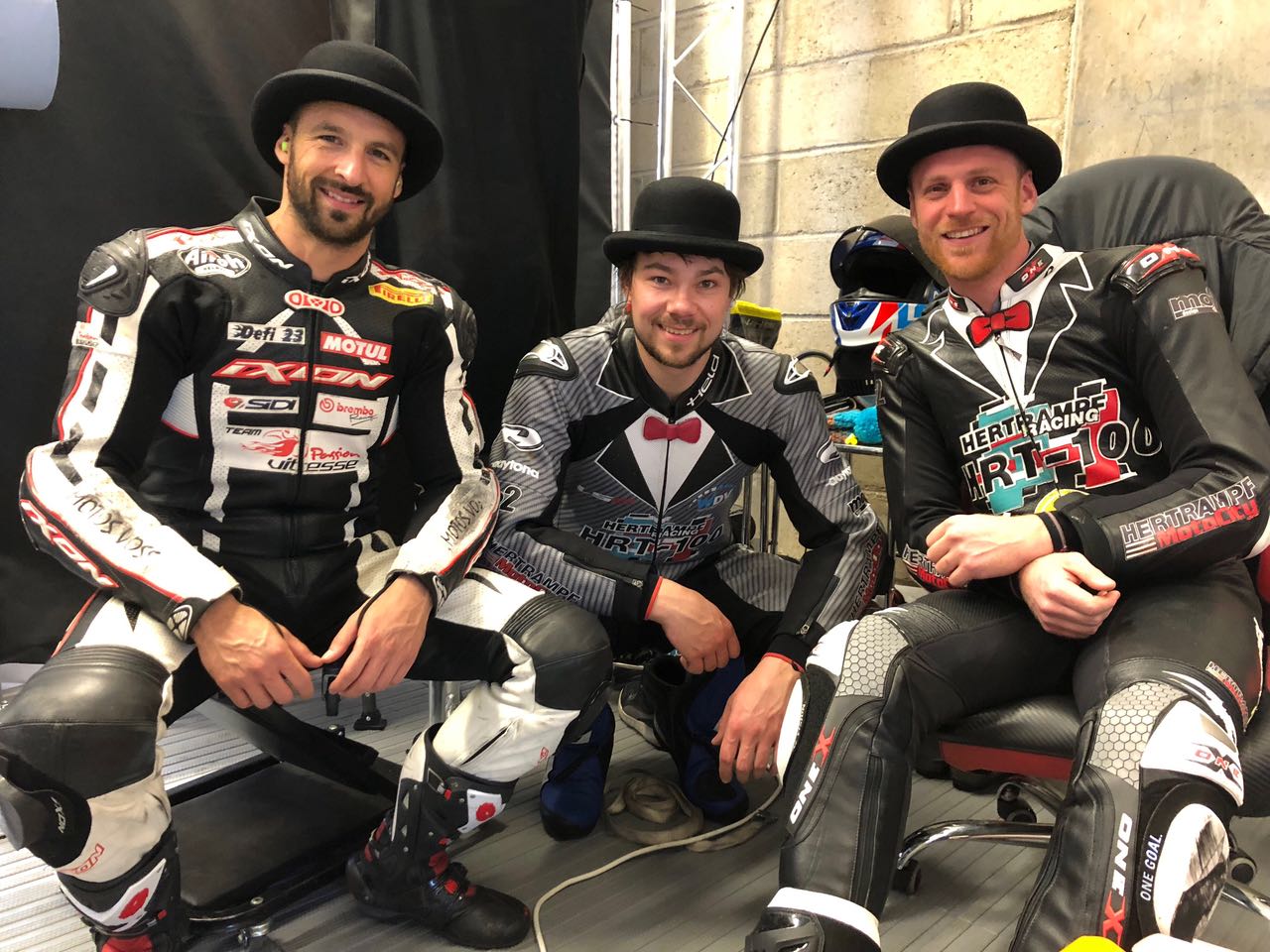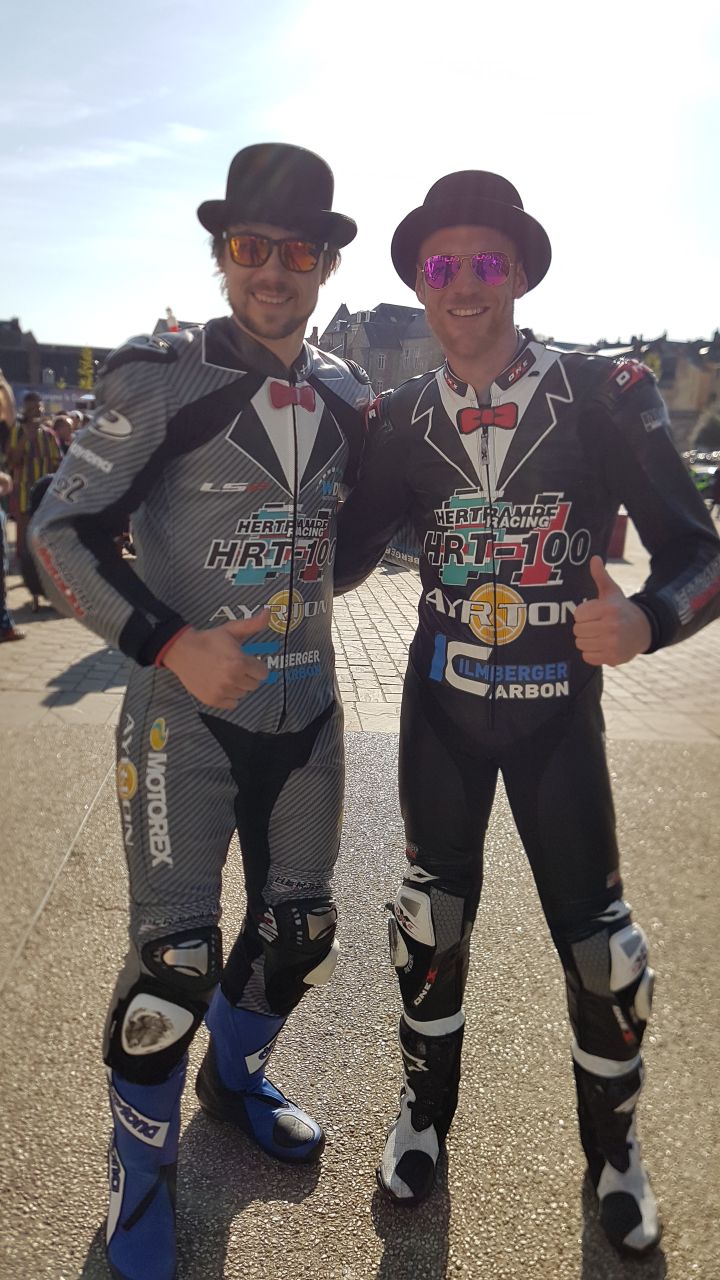Spektakuläres Gentlemen Outfit der Hertrampf HRT100 Fahrer Oliver Skach und Dominik Vincon (v.r.).