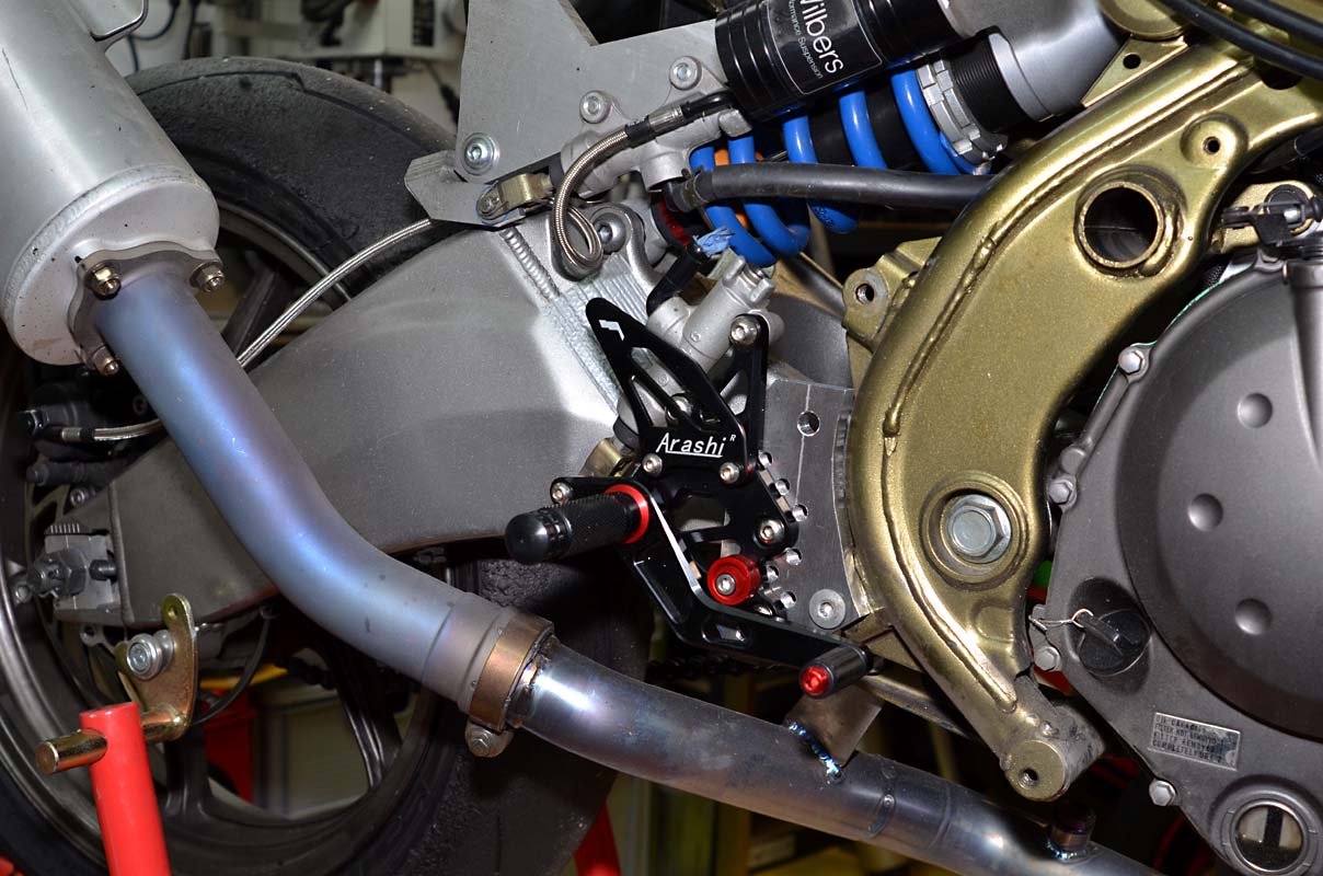 Da kann ich den Originaldämpfer, oder einen Zubehördämpfer montieren, eben alles, was auf einer 2004er ZX10R passt. Aktuell ist einer von MIVV vorgesehen, der liegt bereits im Regal.