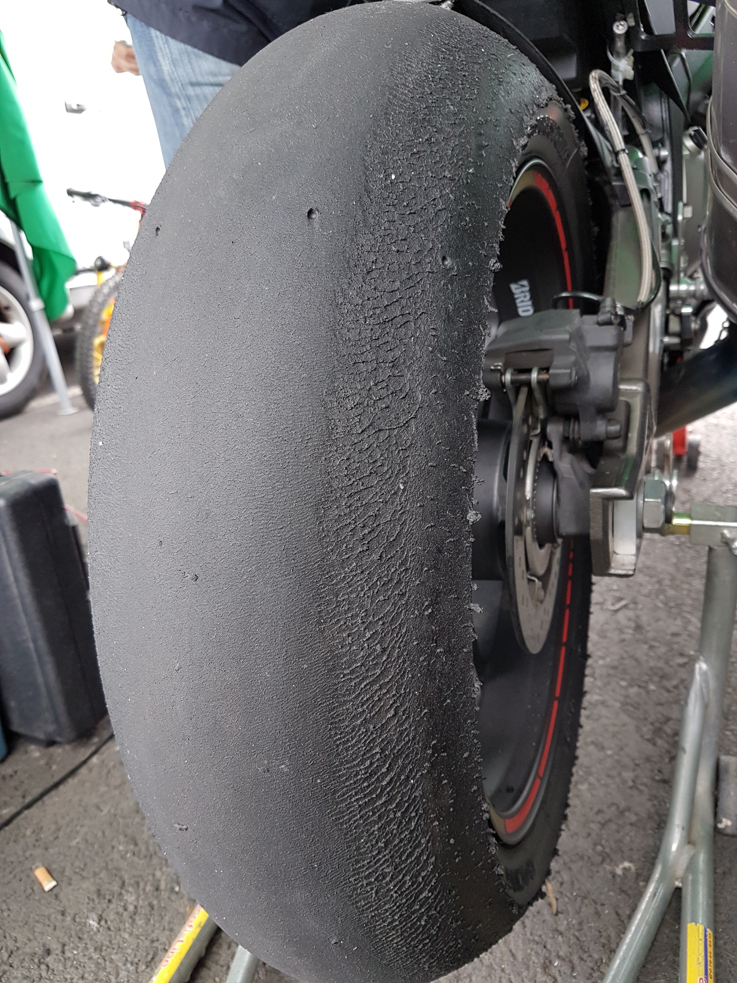 Mir ist am Sonntag bei den kühleren Temperaturen der softe V02 rechts komplett aufgerissen im Rennen. Bisher kannte ich das vom Bridgestone überhaupt nicht.
