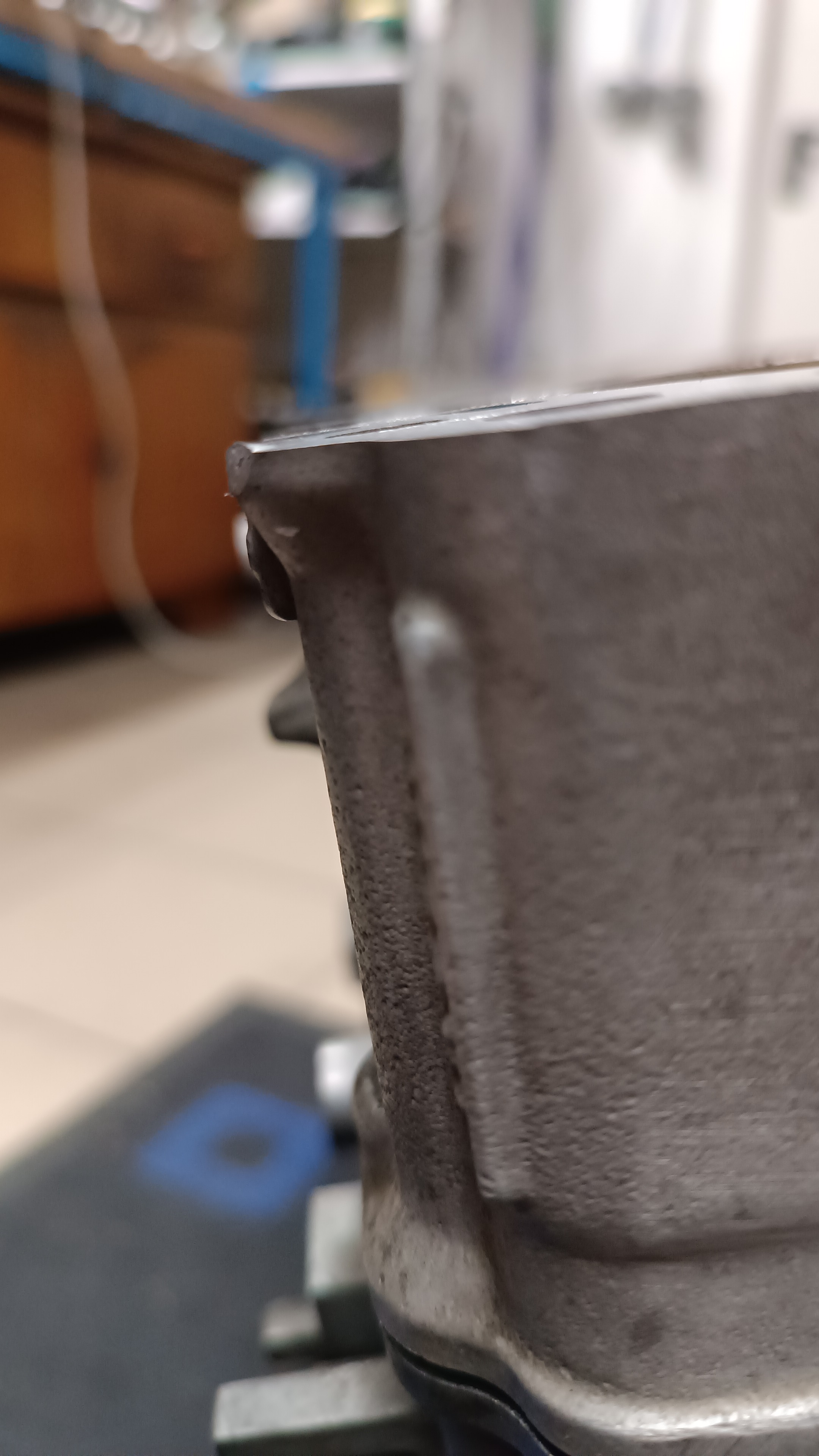 Nach dem Ausmessen der Quetschkante wollte ich ganz beschwingt den Motor zurück auf den Boden stellen.