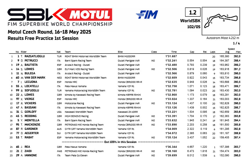 FP1 fängt ja gut an, schon zum 2.Mal rot , erst Rea in der Schikane und dann Iannone und Gardner auf S/Z geerdet.
