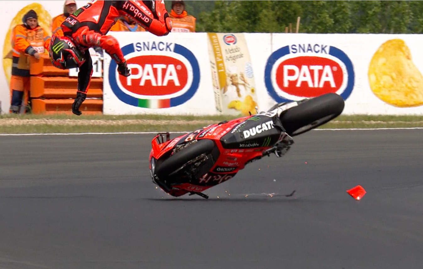 Edit sagt: und jetzt 3. Mal rot nach bösem Highsider von Bulega, wurde weggetragen :(