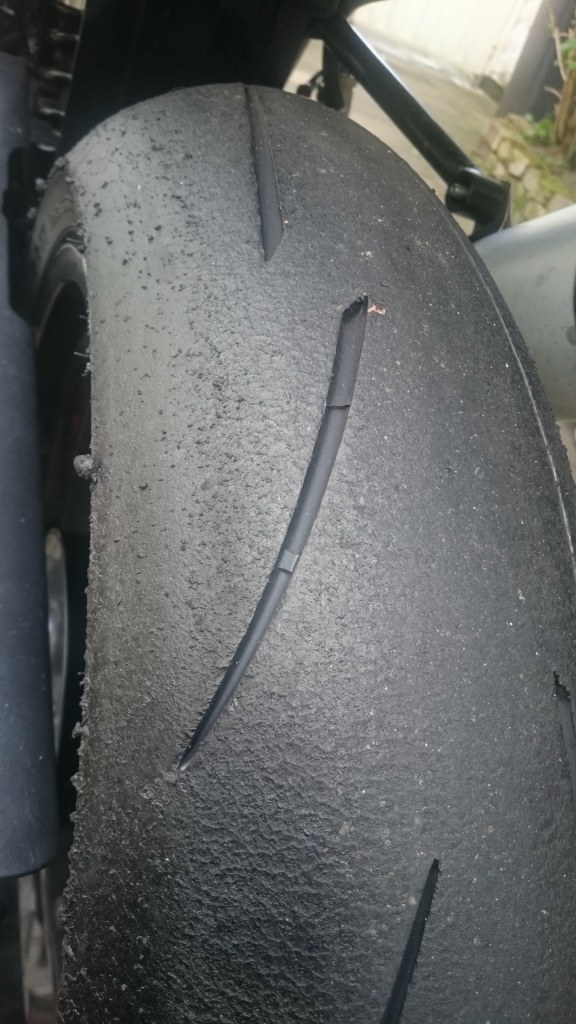 Das ganze ist beim 2h Rennen am 01.04. passiert. Erster Stint um 16 Uhr, Reifen war in Ordnung, zweiter Stint um 17 Uhr, danach dieses Reifenbild, allerdings bin ich im zweiten Stint auch schneller gewesen.