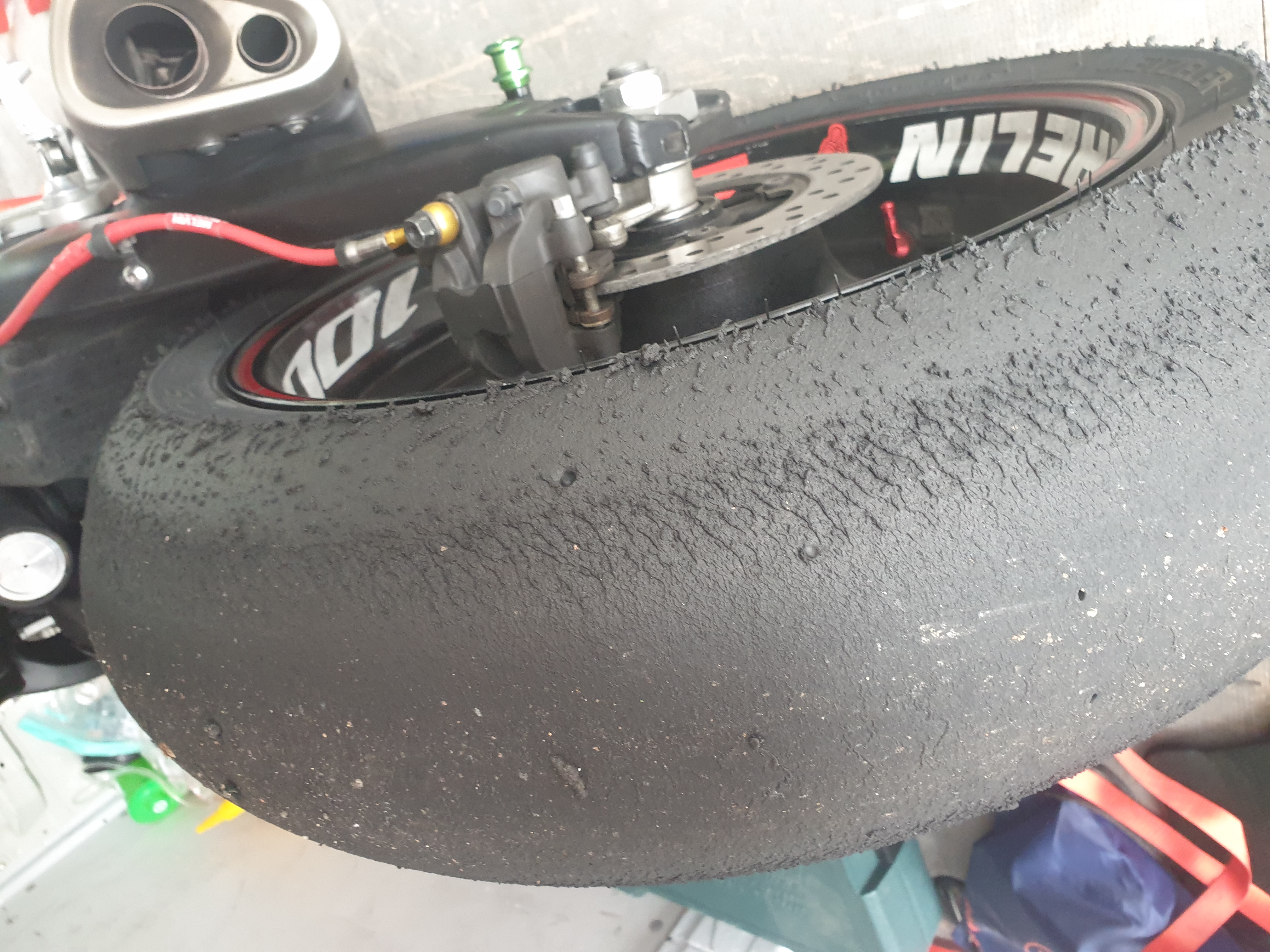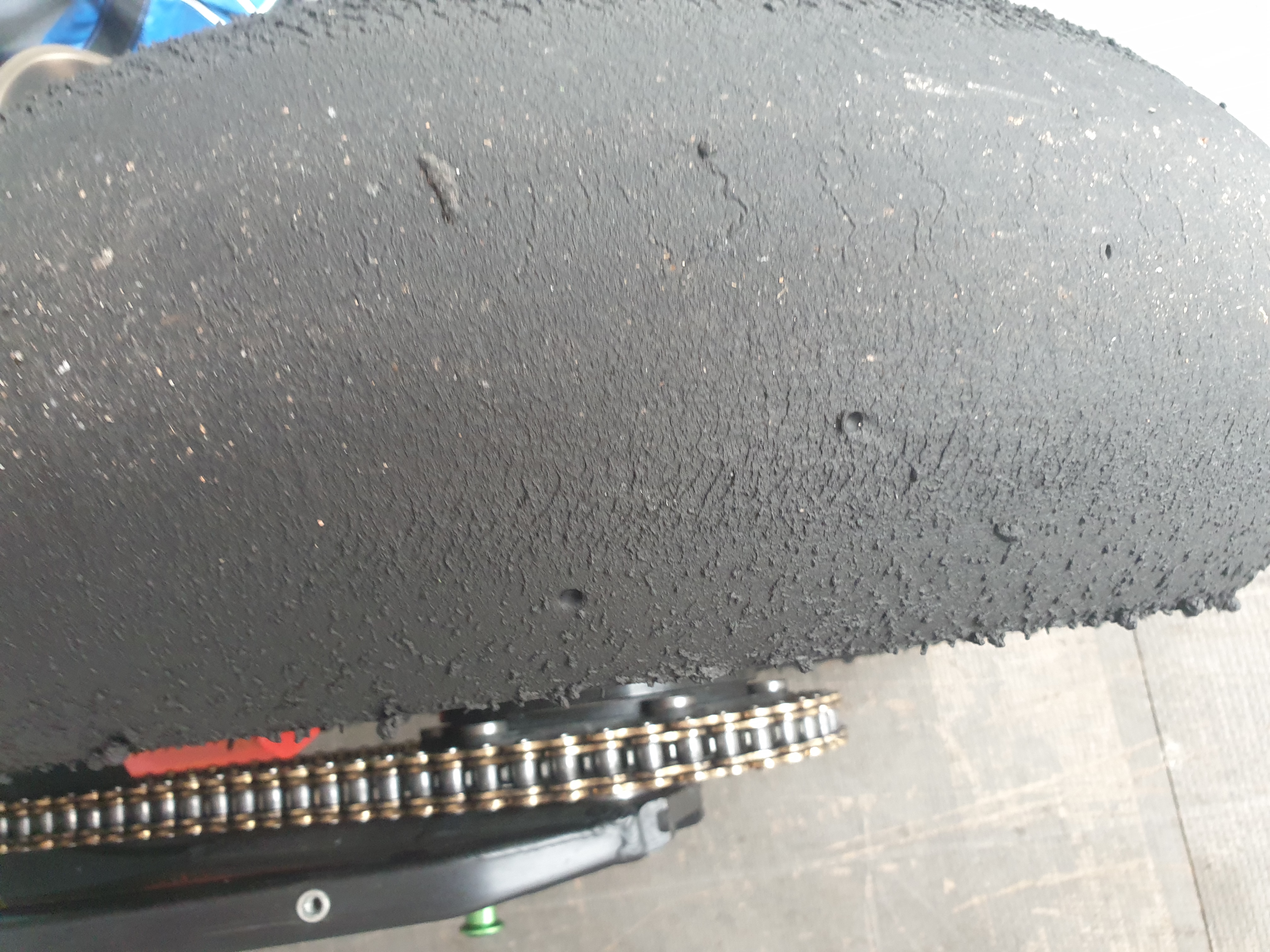 Nach dem letzten Turn (vergessen Luftdruck zu prüfen) war das Hinterrad rechts gut "aufgerissen".