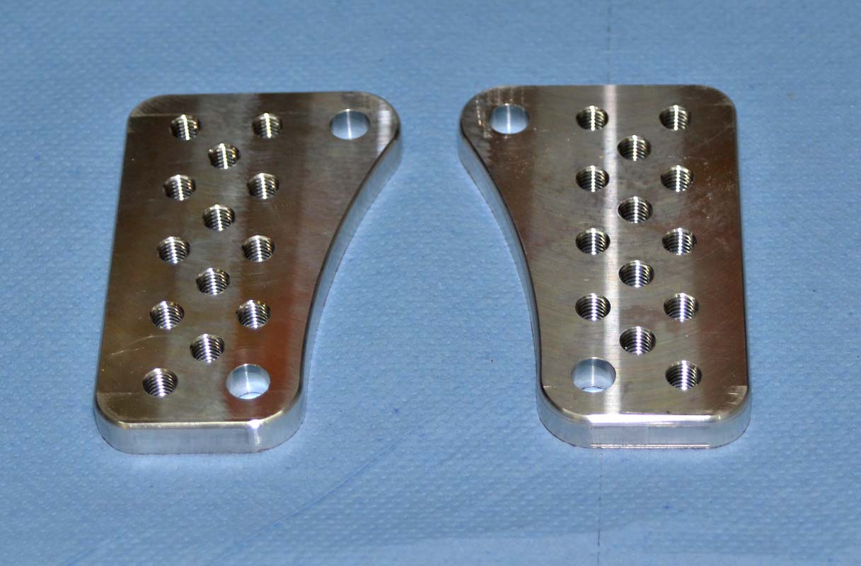 Gestern sind die Grundplatten gekommen. Sehen wirklich gut aus und passen wie geplant. Gewicht: 141 g / Stück. Die linke Platte habe ich probehalber mal an den Rahmen geschraubt. Passt, wackelt, hat Luft und macht mich zufrieden. Jetzt noch eine Haltelasche für die obere Aufnahme fertigen und am Rahmen verschweißen. Zum Abschluss die alte Originalaufnahme entfernen und das Thema Rastenaufnahmen ist erledigt.