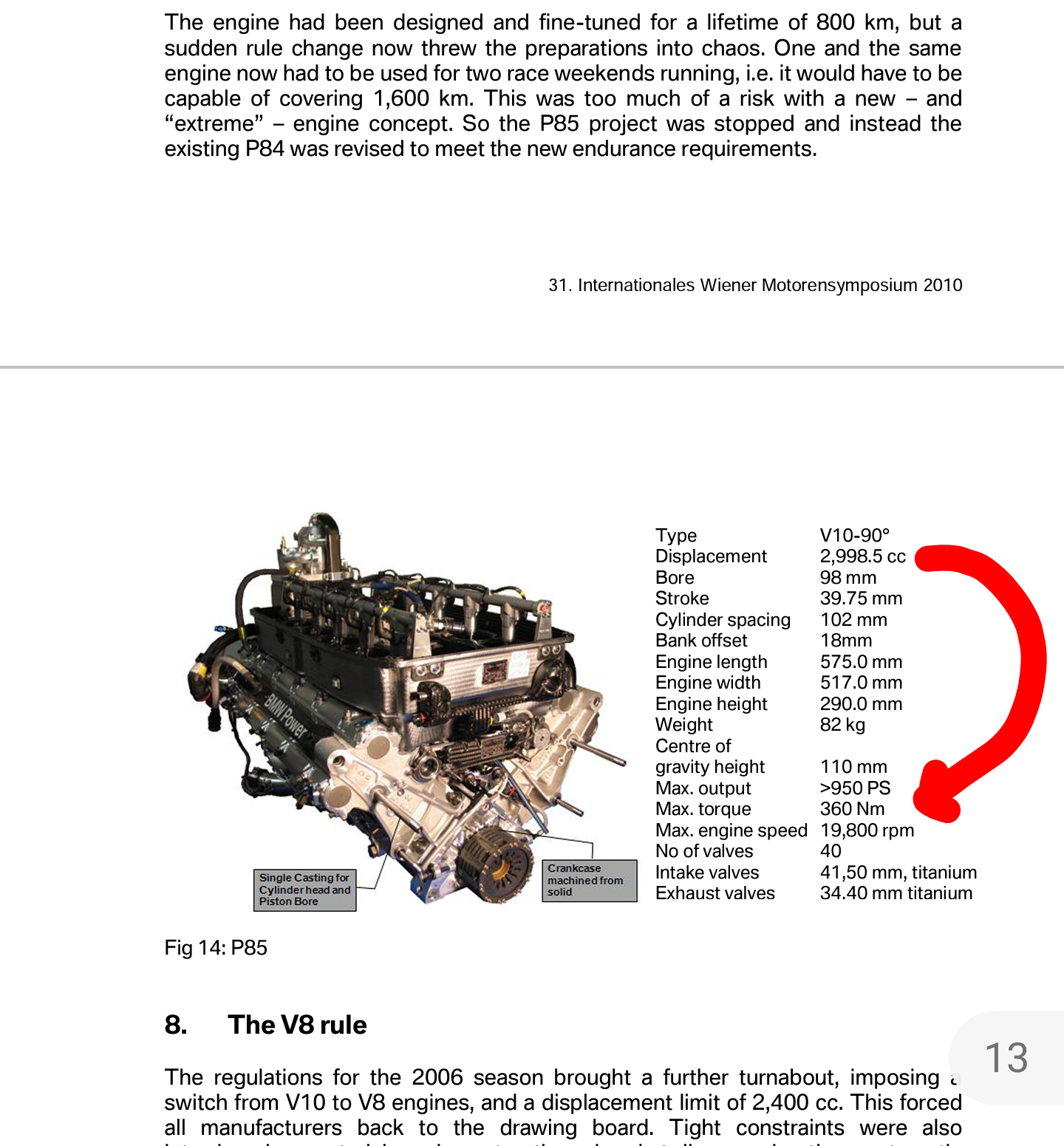 Zum Vergleich, selbst die am höchsten entwickelten Saugmotoren auf diesem Planeten, nämlich die 3.0 V10 der Formel 1 von 2005 mit knapp 1000PS (das sind 330PS aus einem Liter!), auch die sind an diese Grenzen gebunden, nämlich um die 360Nm aus 3l.