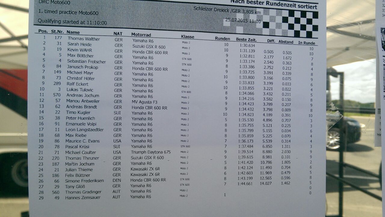 Im quali 1 vorhin mit geänderter Übersetzung und Änderung an der Geometrie konnte ich auf Platz 4 fahren. Das Feld ist jedoch sehr eng beeinander und permanent kommen Verbesserungen der Fahrer. Fetzt!