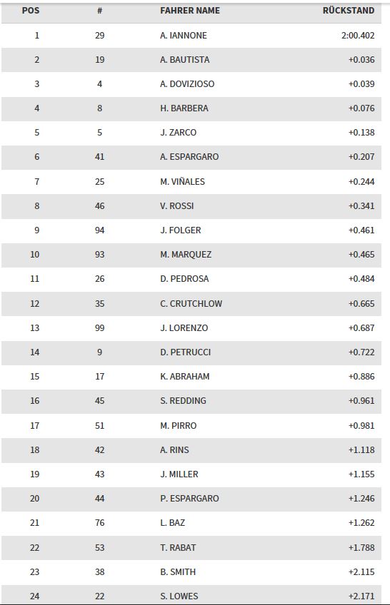 Lorenzo mal auf 11, Rossi 12, Pedrosa 13