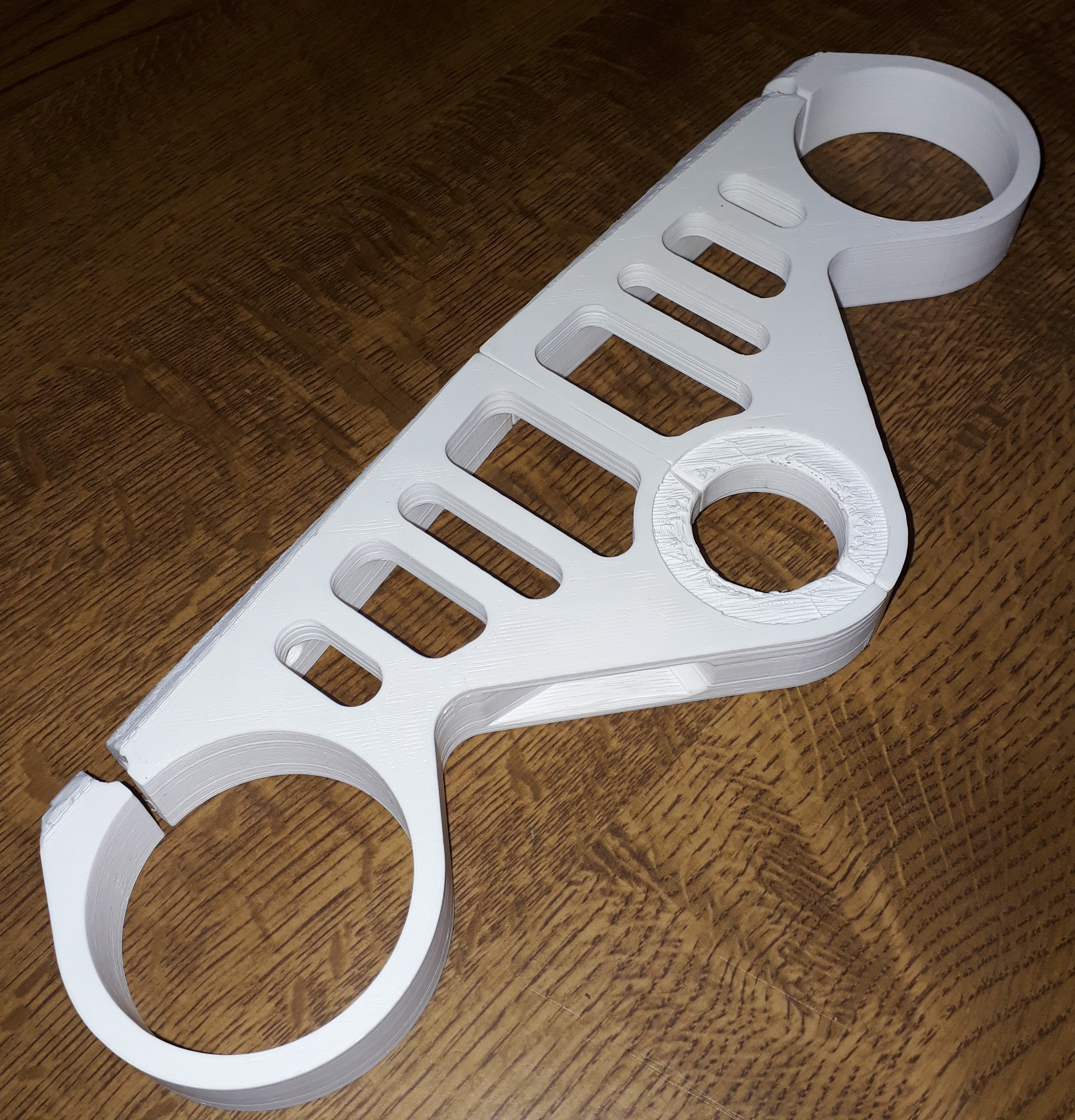 Test bestanden, die Gabelbrücke hat dich bei dem Unfall nichtmal um 0,05mm verformt, bei der original Brücke wäre ich mir da nicht so sicher gewesen, da habe ich schonmal eine gesehen, die war nach einem ähnlichen Crash in der Mitte gespalten