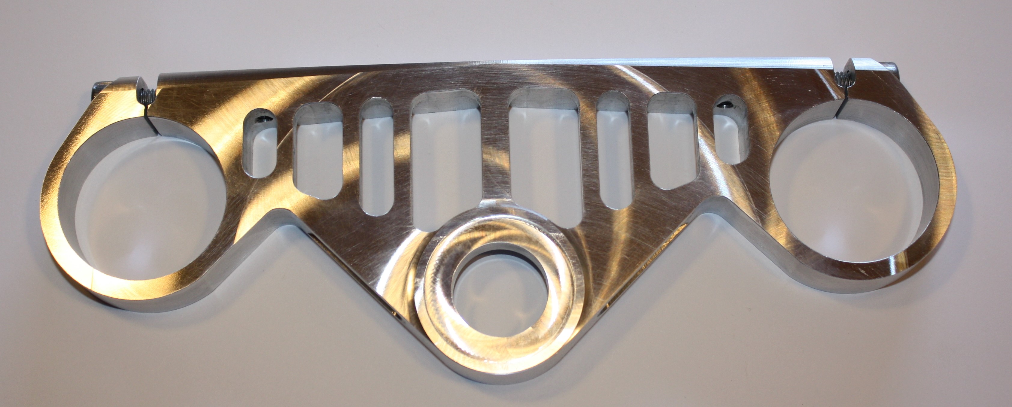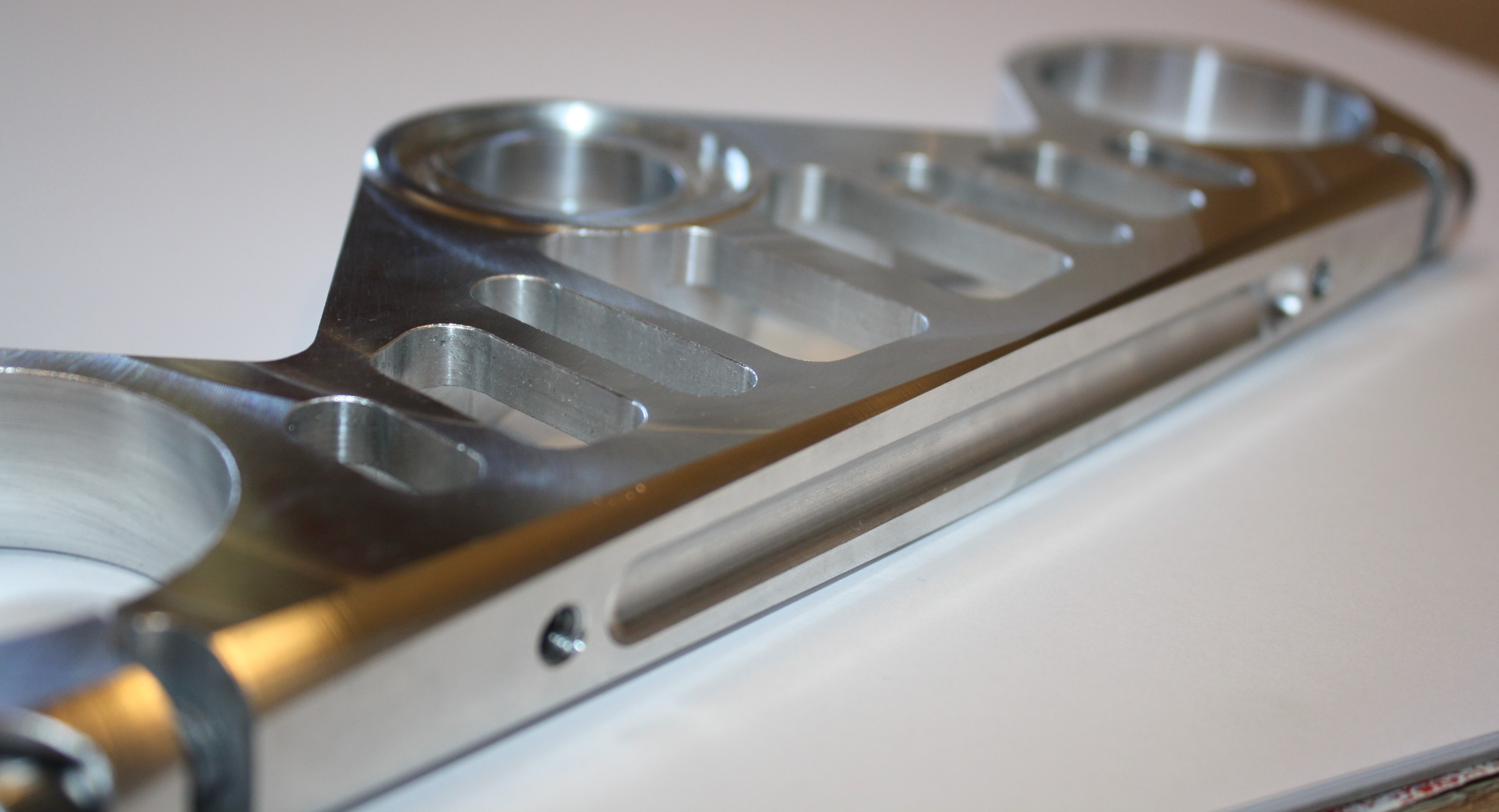 Also muss eine Gabelbrücke her, natürlich ohne Zündschlossloch und ohnehin etwas schicker. Wer steht denn nicht auf das M1-Gabelbrückendesign