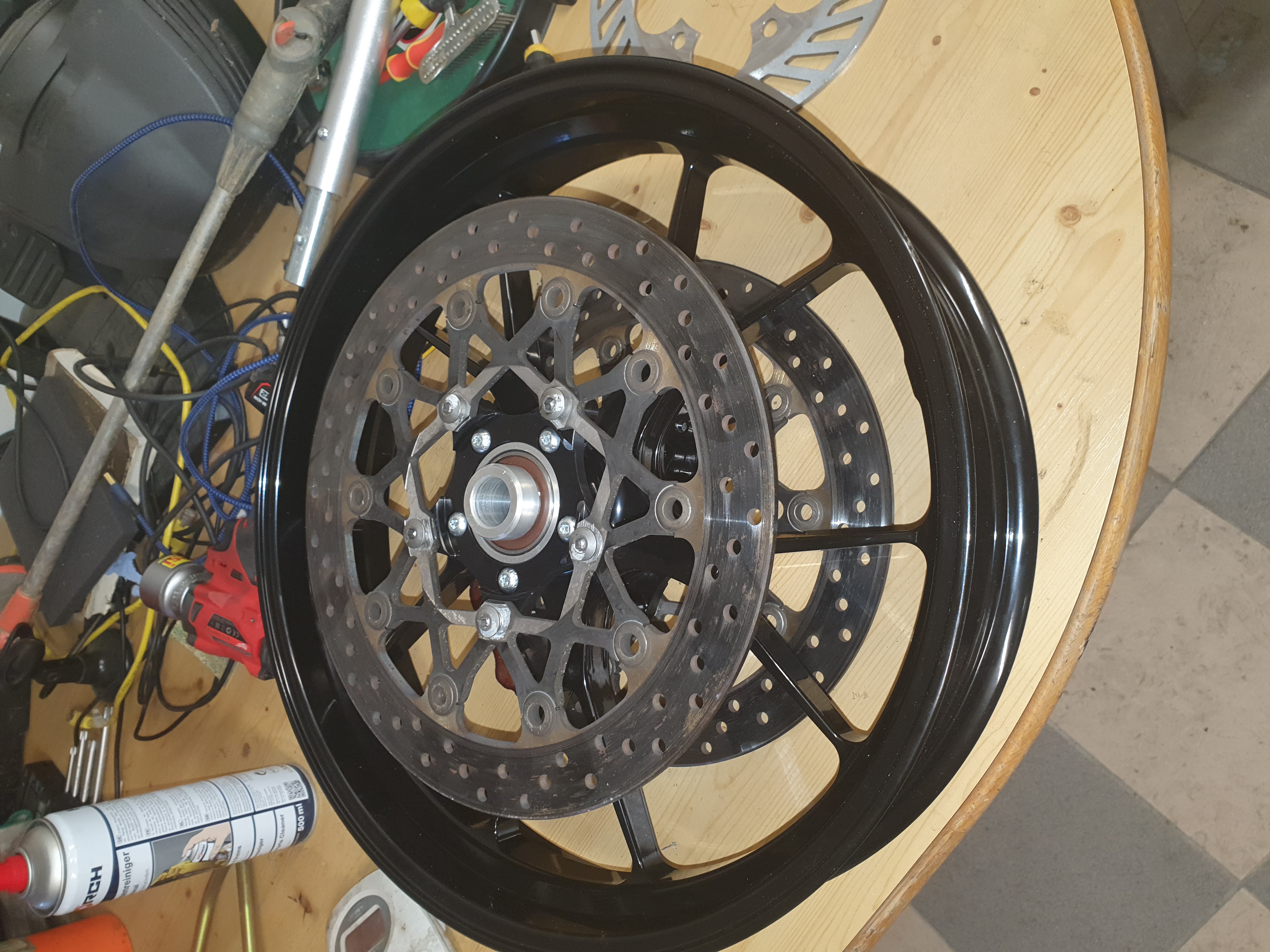 Hinten sind es knapp 1,7 Kg, vorne 0,8 KG Unterschied. Die Felgen passen