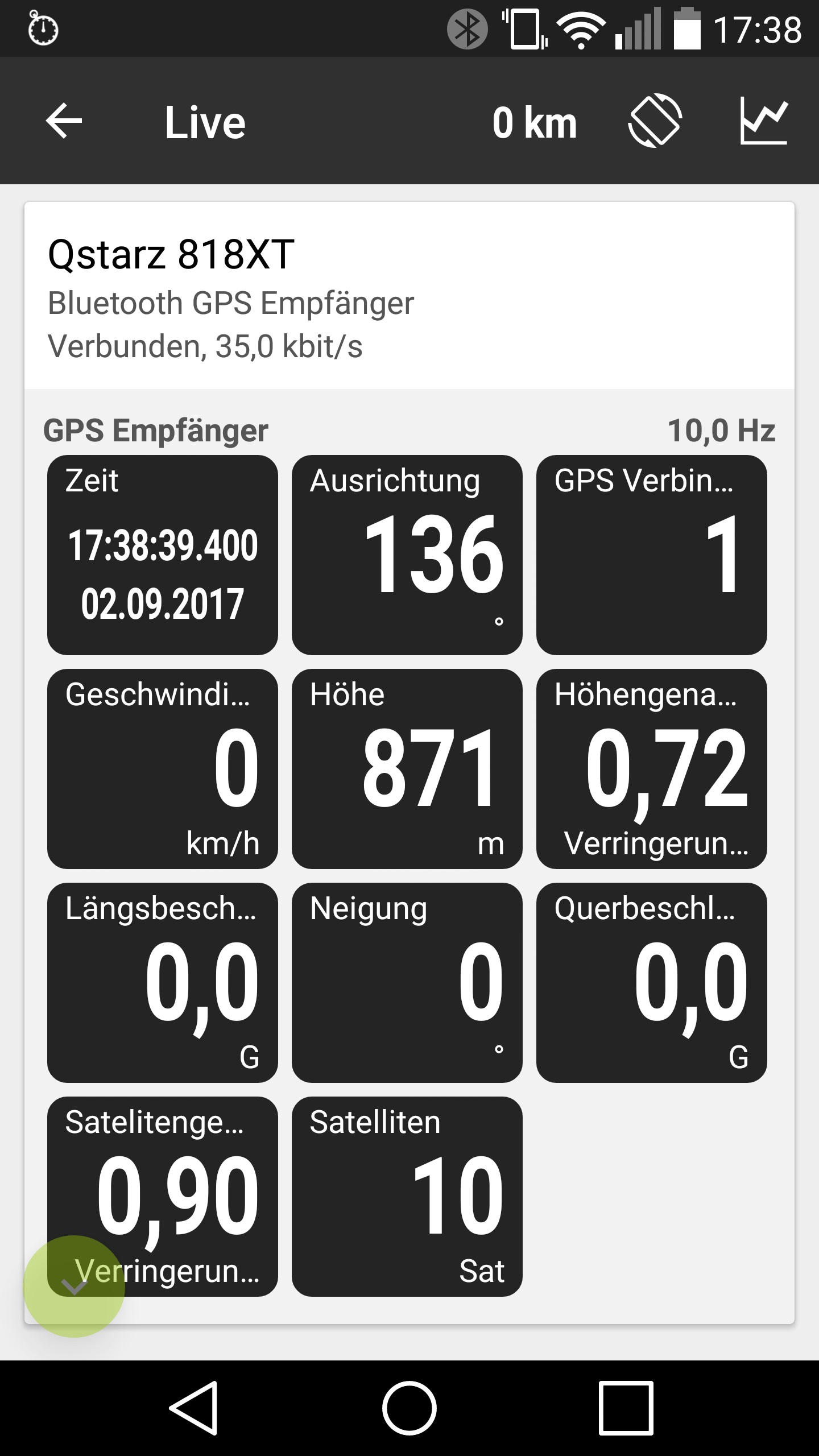 Gestern habe ich die Anleitung gelesen und bemerkt das der Qstarz nur auf 1Hz läuft.