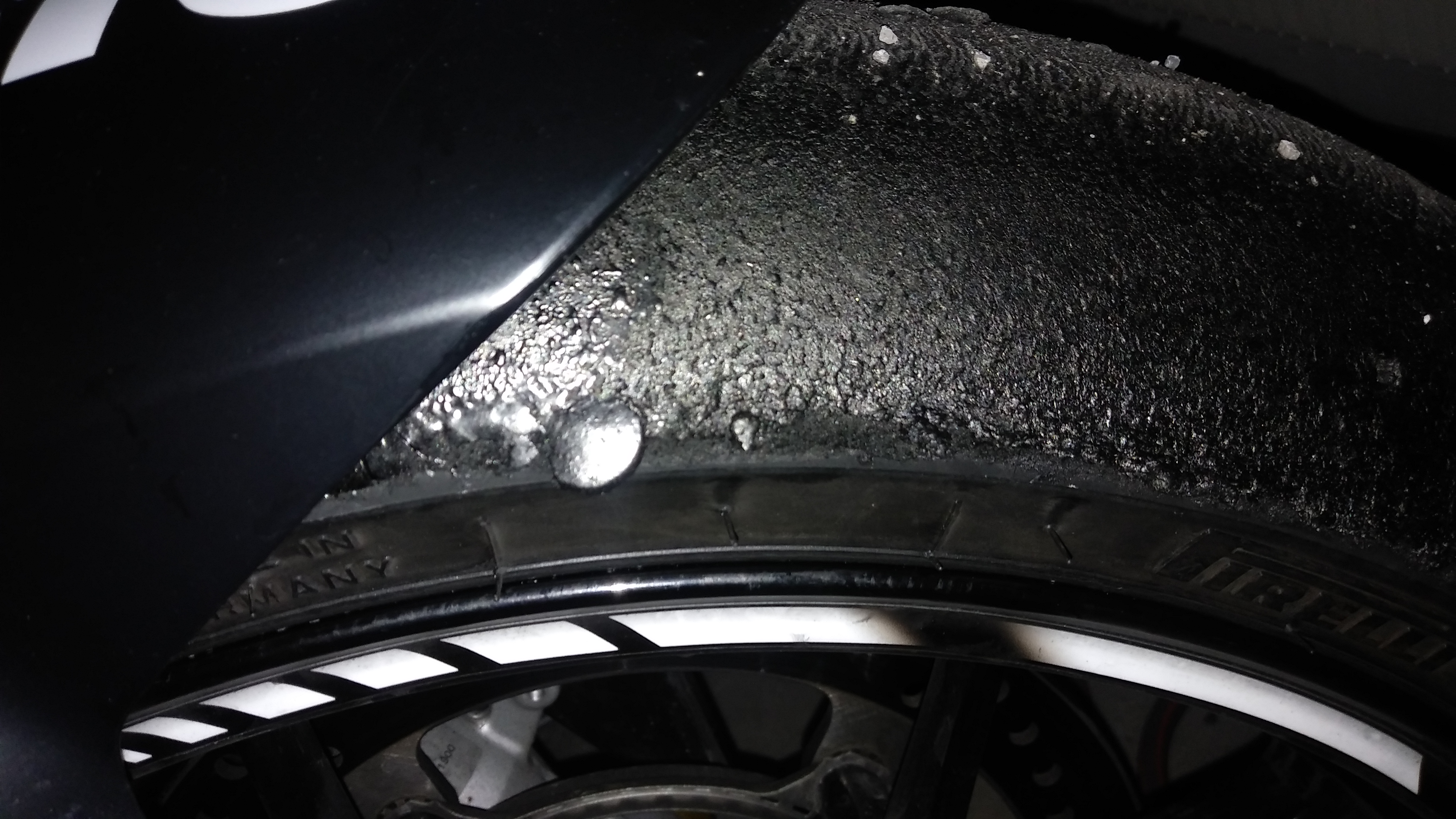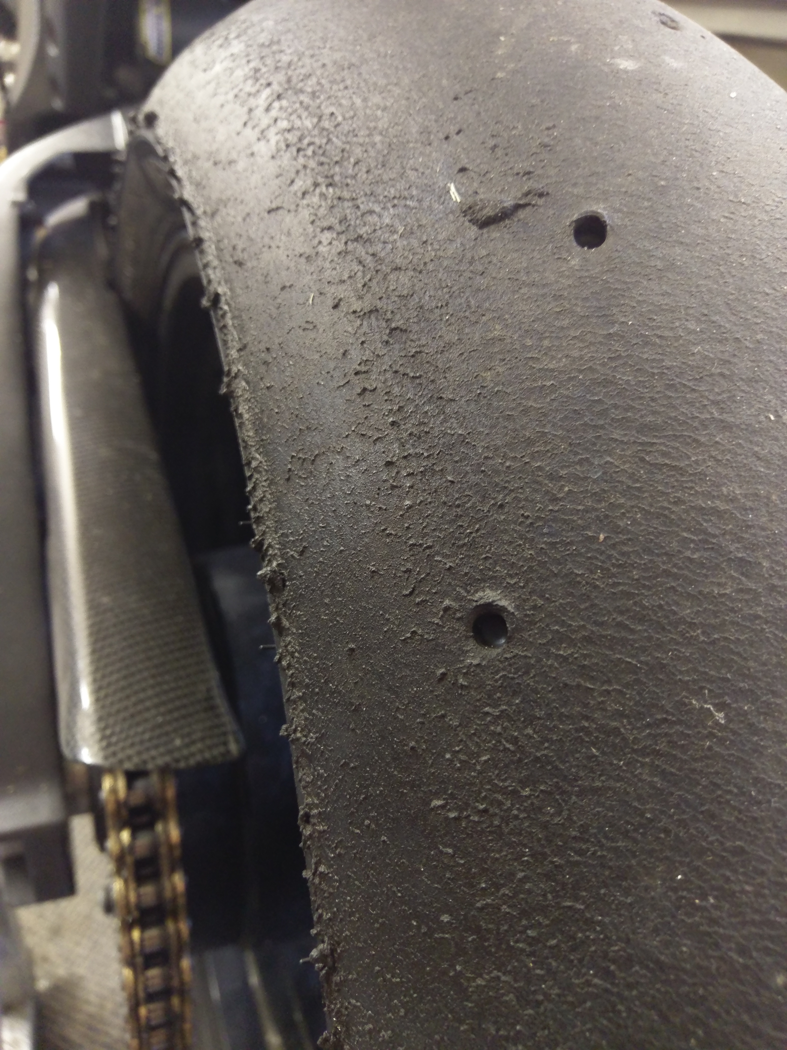Hinten sieht eigentlich auch OK aus, bis auf die Kante. Die äußere Flanke ist recht glatt und weniger abgefahren (ist wie ein Knick/Kante drinnen). Das ist auf beiden Seiten identisch.