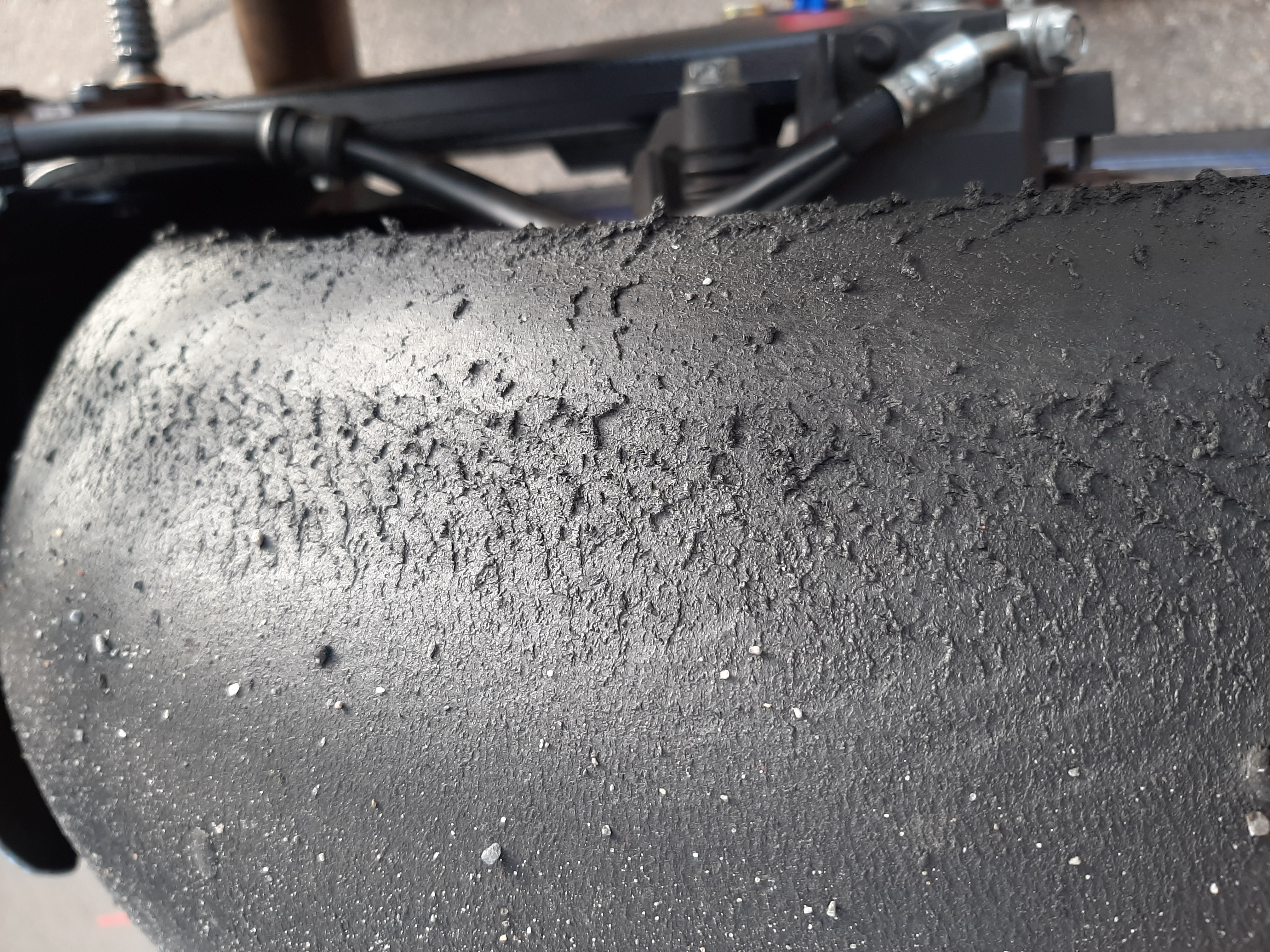 Für mich sieht das aus wie Cold Tear. Der Reifen bekommt nicht genug Temperatur. Das kann mehrer Gründe haben: