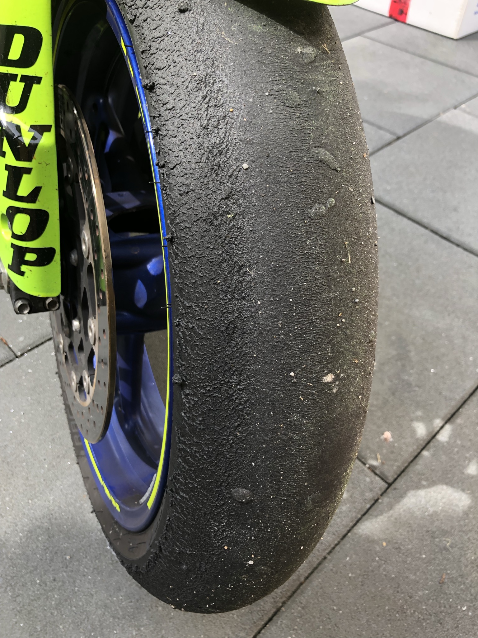 Hatte keine Probleme mit dem Reifen, nur habe ich so ein Reifenbild bei mir noch nie gesehen deshalb bin ich etwas unsicher. War es einfach zu heiß für den K1 vorne oder ist das normal und unbedenklich bei den Temperaturen?