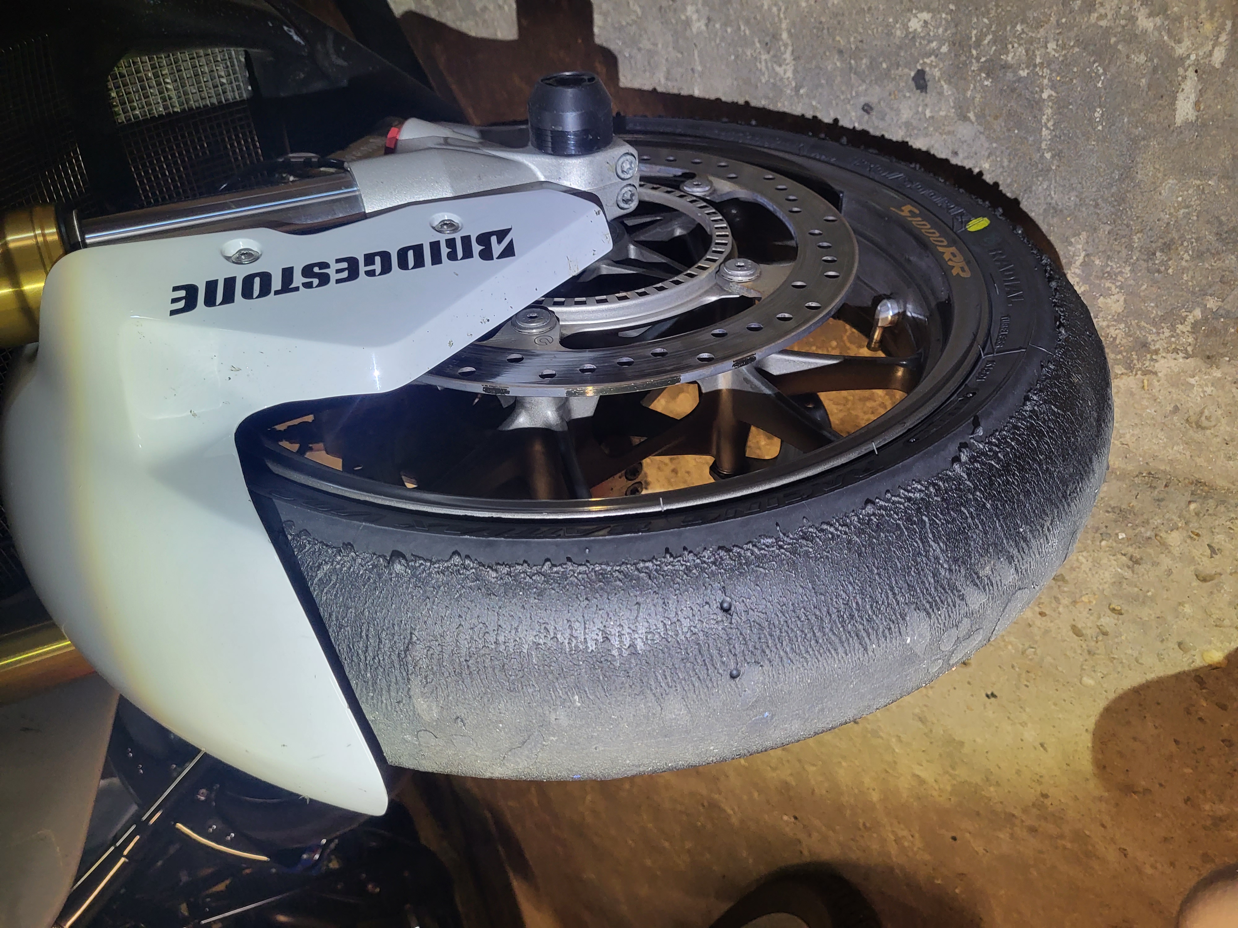 Und kleiner Exkurs zu den 1000er-Reifenbildern generell... Meiner Meinung nach ist da eher zwischen 2 Zylinder und 4 Zylinder als den Hubräumen zu unterscheiden. 4-zylinder-Slicks sehen immmer glatter aus (bei Fahrwerk ok) im Vergleich zum V2. Hat was mit Lastspitzen und Zündversatz zu tun, führt hier aber eindeutig zu weit...