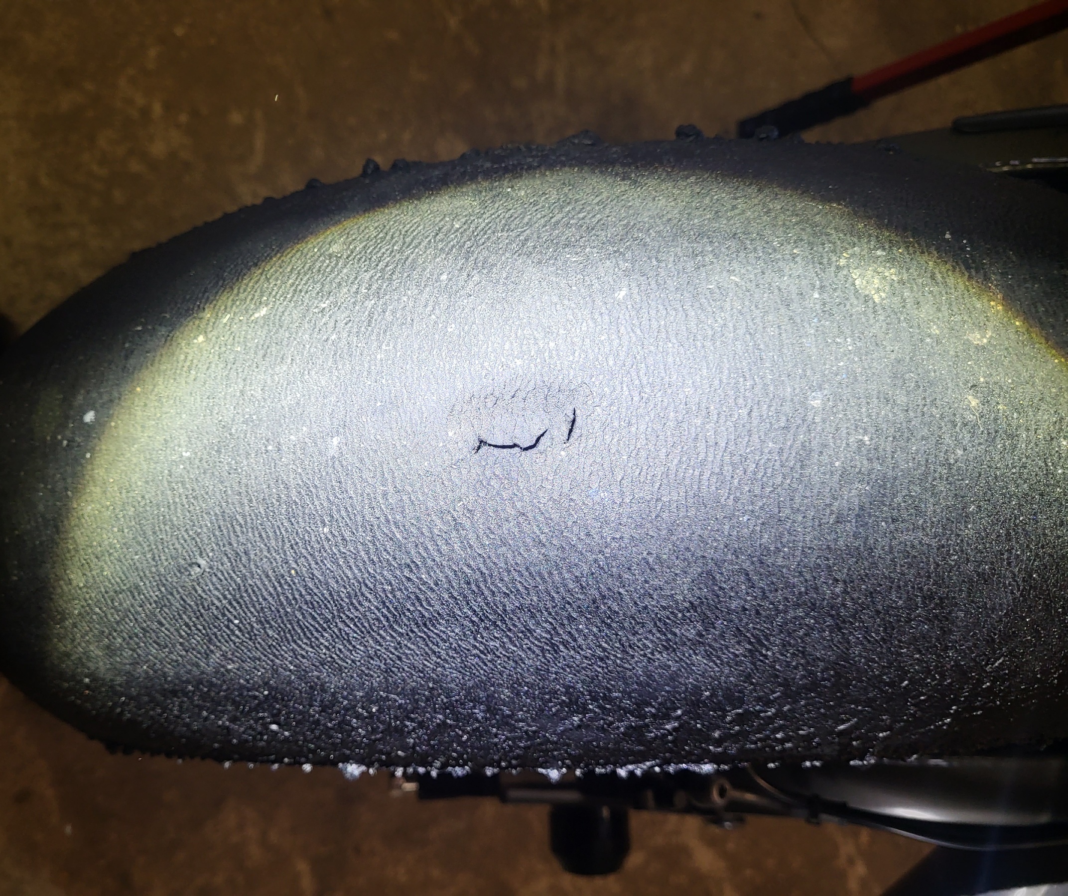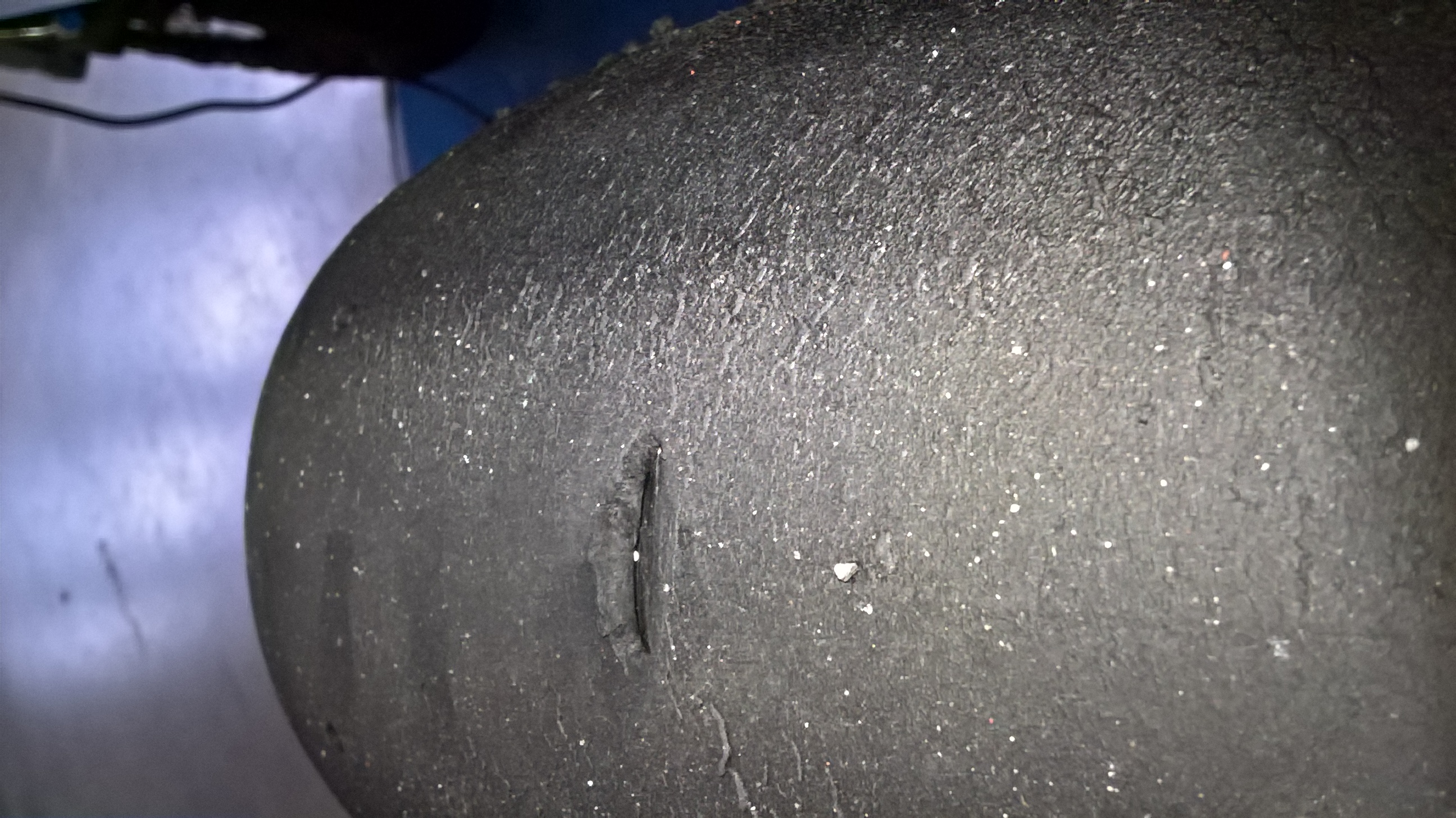 Ja hinten sieht nicht gut aus. Neben dem Riss ist der auch "weich" und etwas eingedellt.