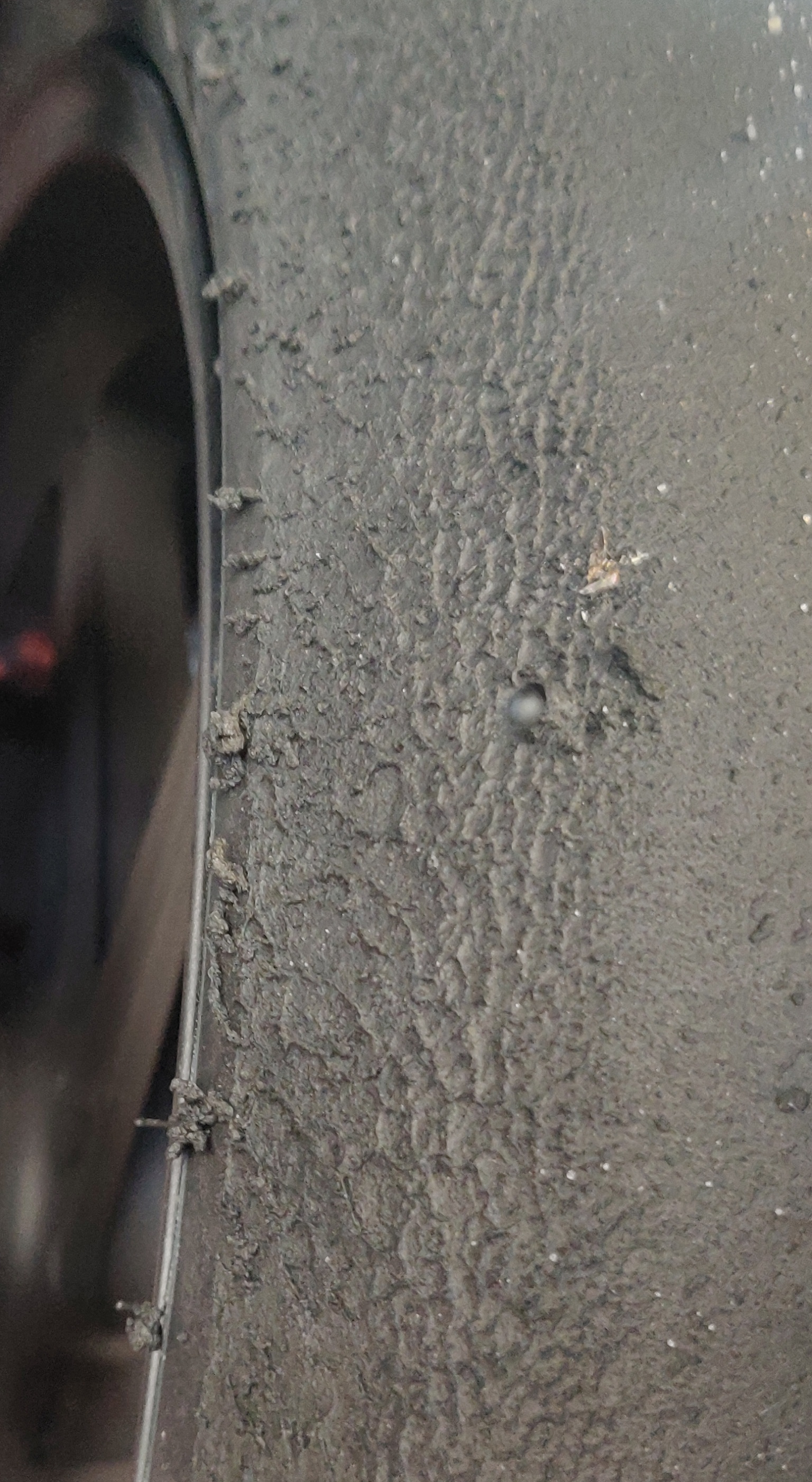 sieht gut aus !!! Rechts hat er halt schon eine gute "Kante" drin (zumindest auf dem letzten Bild). Das wirste dann merken, aus der Spitzkehre hinten raus in Most. Oder sobald einen neuen montierst. Wenns Gummi wieder rund ist :)