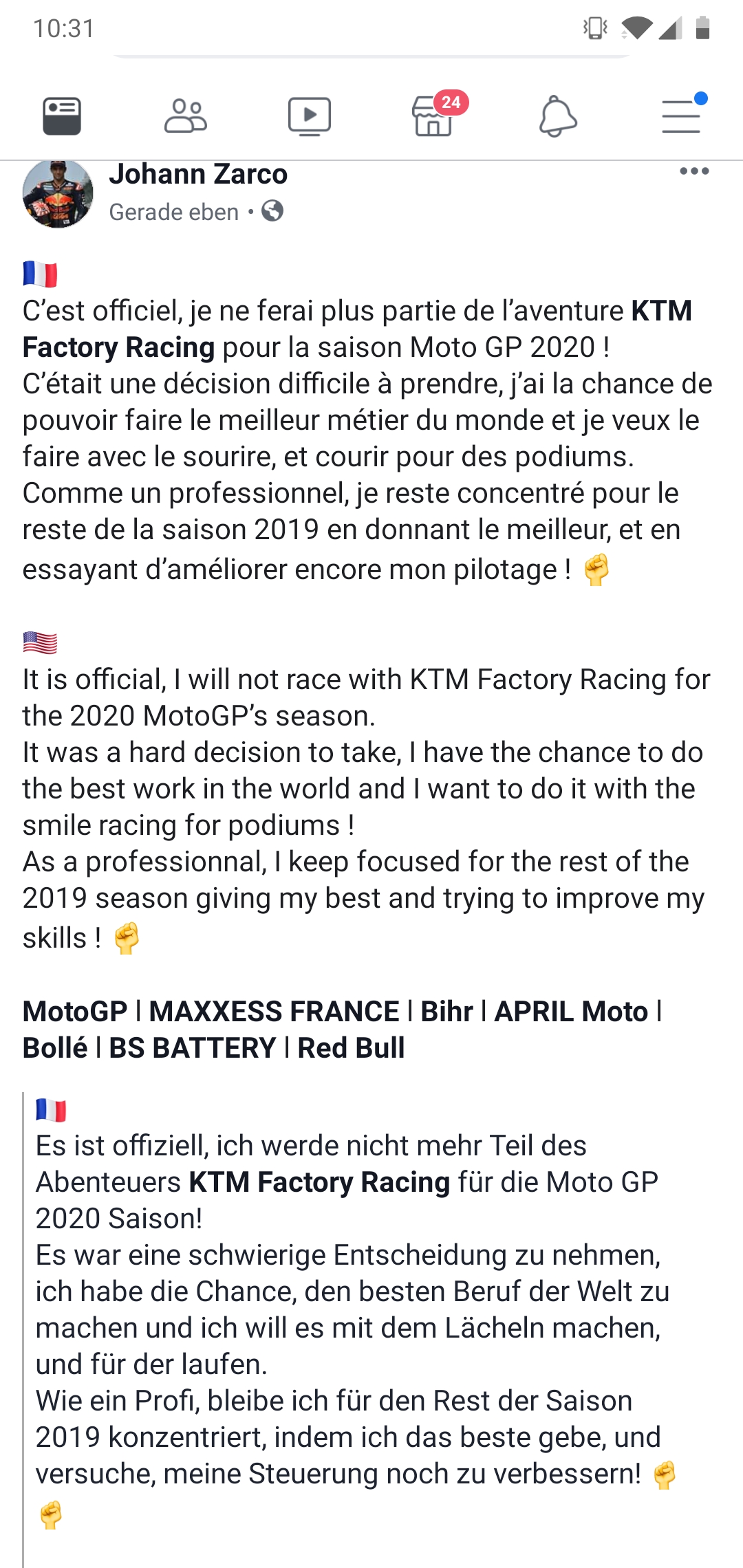 das mit KTM und er Moto2 hat mich echt überrascht.
