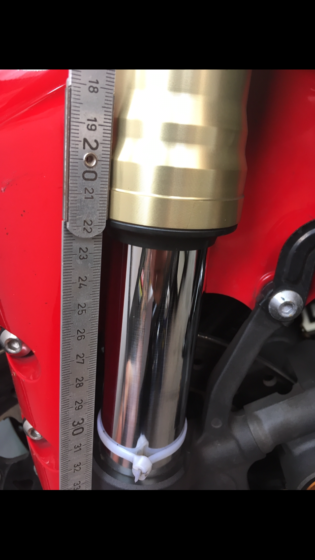 Von der Unterkannte der unteren Gabelbrücke bis zum Ende des Tauchrohres sind es bei mir 241mm. Kann das vielleicht jemand zum Vergleich mal nachmessen. Ich versuche inzwischen rauszufinden wie man Fotos hochlädt.