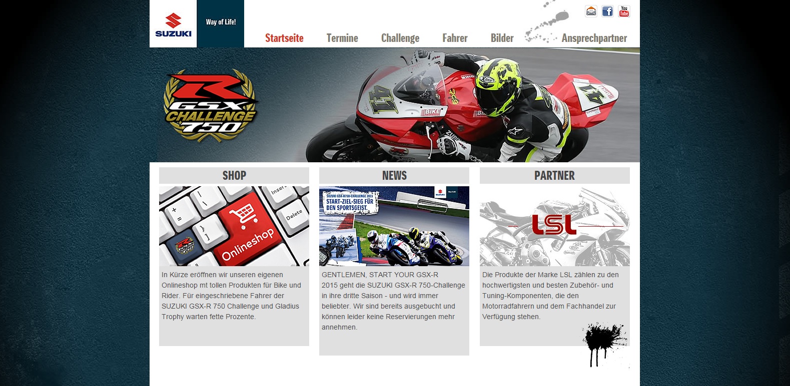 Gilt das auch für die richtige ursprüngliche Suzuki Challenge?marcod hat geschrieben:Hallo, erstmal Glückwunsch das der Cup jetzt schon wieder ausgebucht ist. Leider sind wir dieses Jahr nicht mehr offiziell dabei. Alle eingeschriebenen Cup Teilnehmer können aber weiterhin zu Top Konditionen bei uns Teile und Bekleidung beziehen. Fragt einfach mit Angabe der Startnummer nach der GSXR Cup Optionsliste wir haben wieder viele tolle Teile für euch. Gerne bauen wir auch eure GSXR 750 einfach Anfragen.
