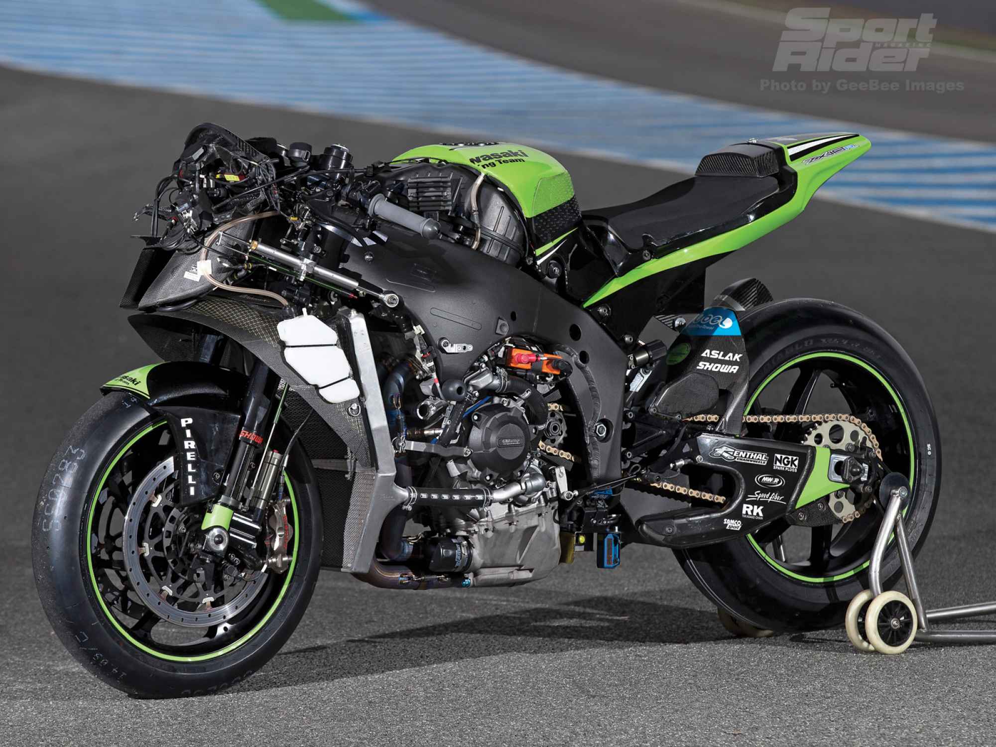 "Notice also the rear brake lever just below the left clip-on, which Sykes uses to manage wheelies..."