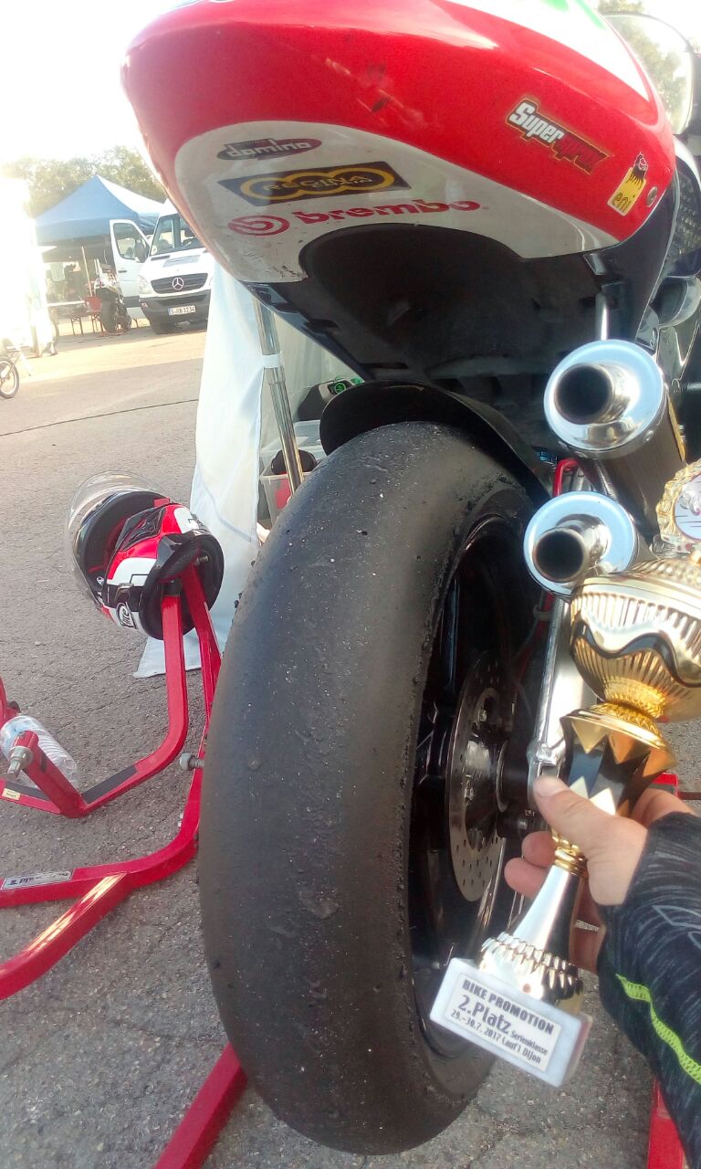 Sonntag früh, das WarmUp stand an, alles erstmal Warmlaufen lassen, rauf auf den Bock und sich nochmal auf die Bridgestone´s einschießen, den hatte ich schließlich neu zum ersten Rennen hin erst aufgezogen.