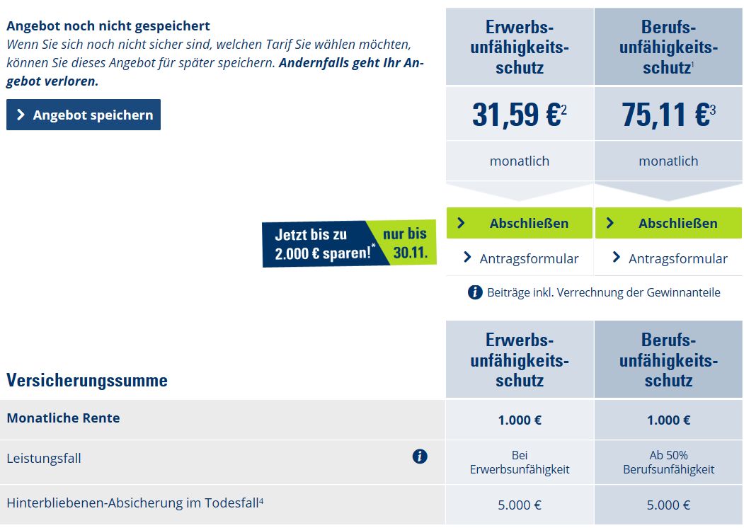 580 € Jahresbeitrag für 1.600 € Berufsunfähigkeitsrente finde ich nicht teuer.