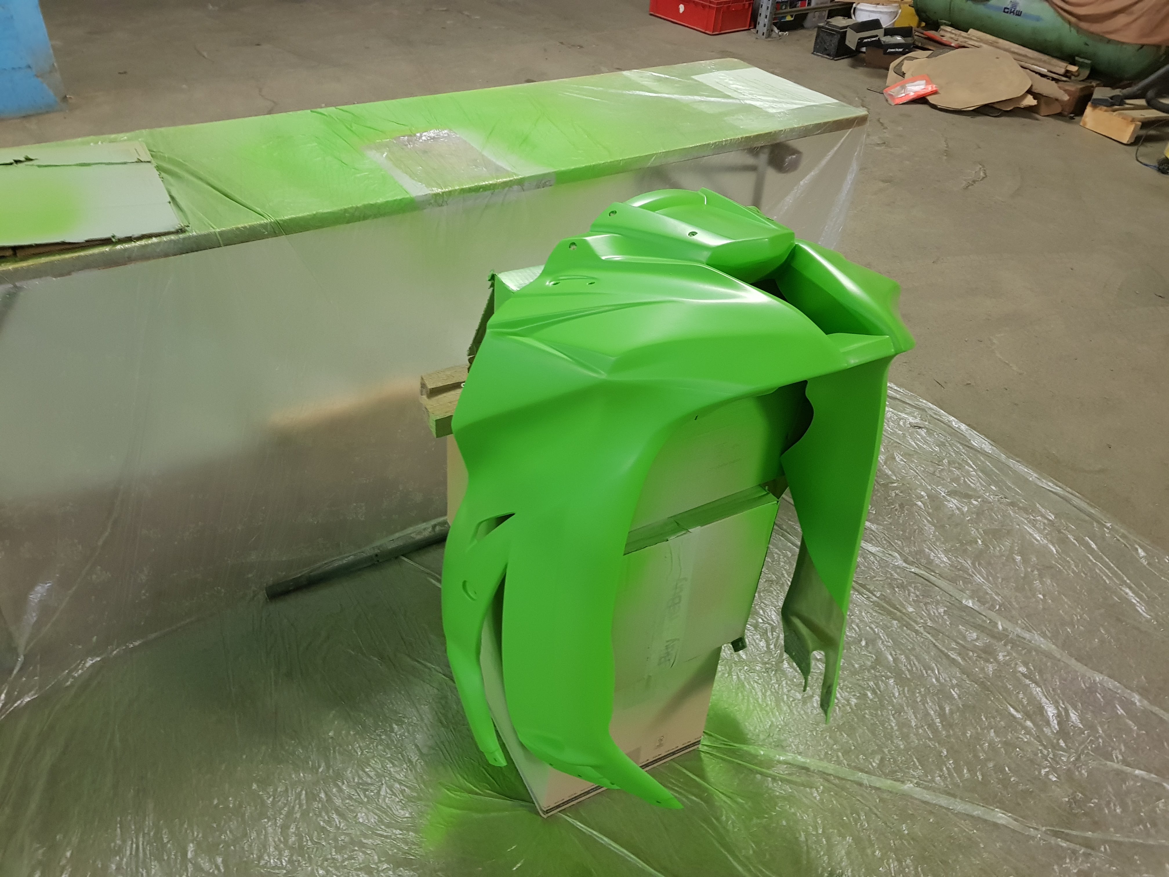 Entschieden habe ich mich für das Kawagrün. Eigentlich wollte ich irgendwas ausgefallenes probieren, aber Maximalprinzip: alle erforderlichen zutaten waren bereits vorhanden (aus der Lackierung meiner 600er)