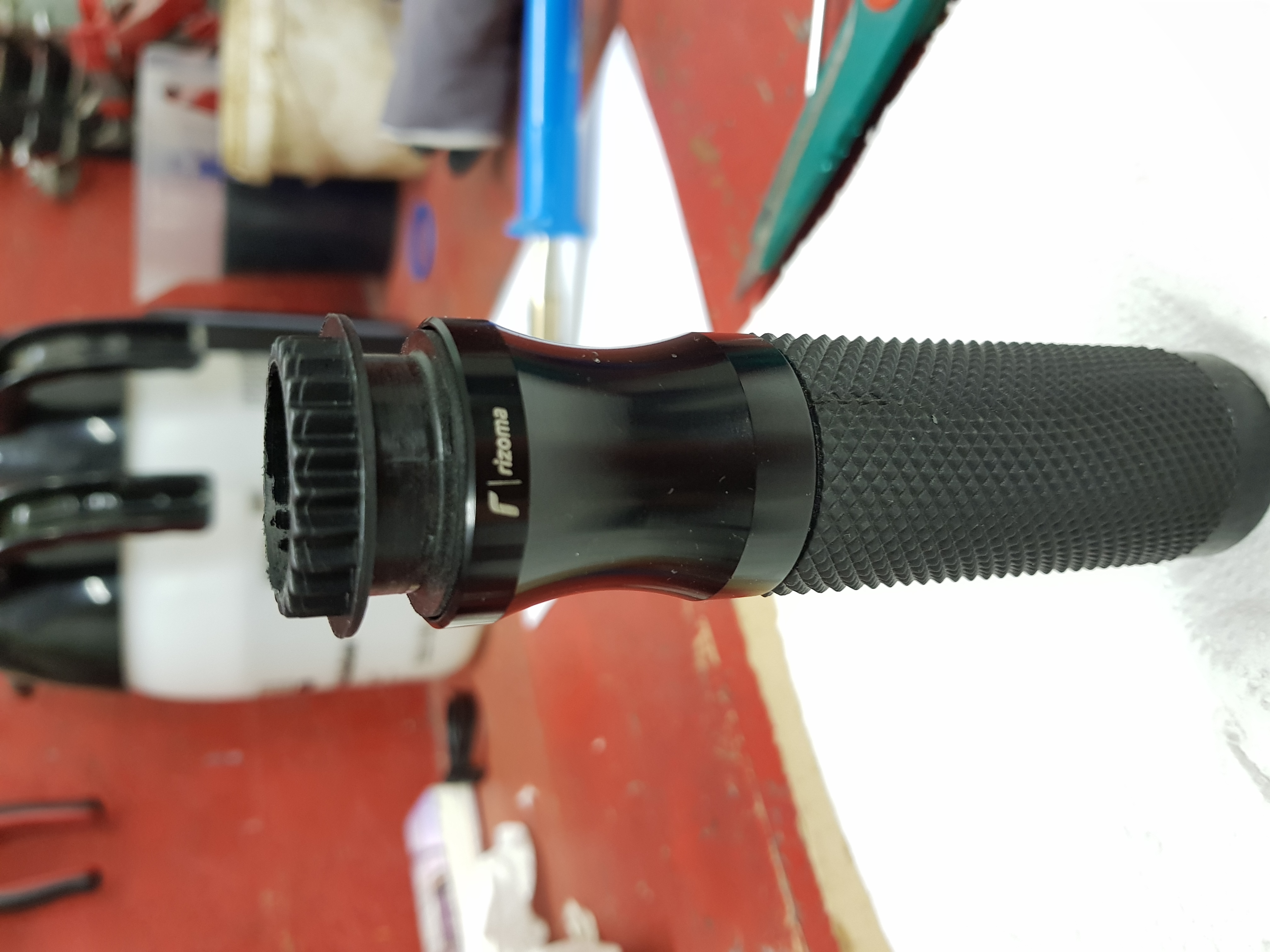 Voller Vorfreude wollte ich heute die Griffe abbauen. Ging auch sehr fix und easy:-) voller Entsetzen müsste ich allerdings feststellen, dass der Rizoma gasgriff die ursprüngliche hülse ersetz.
