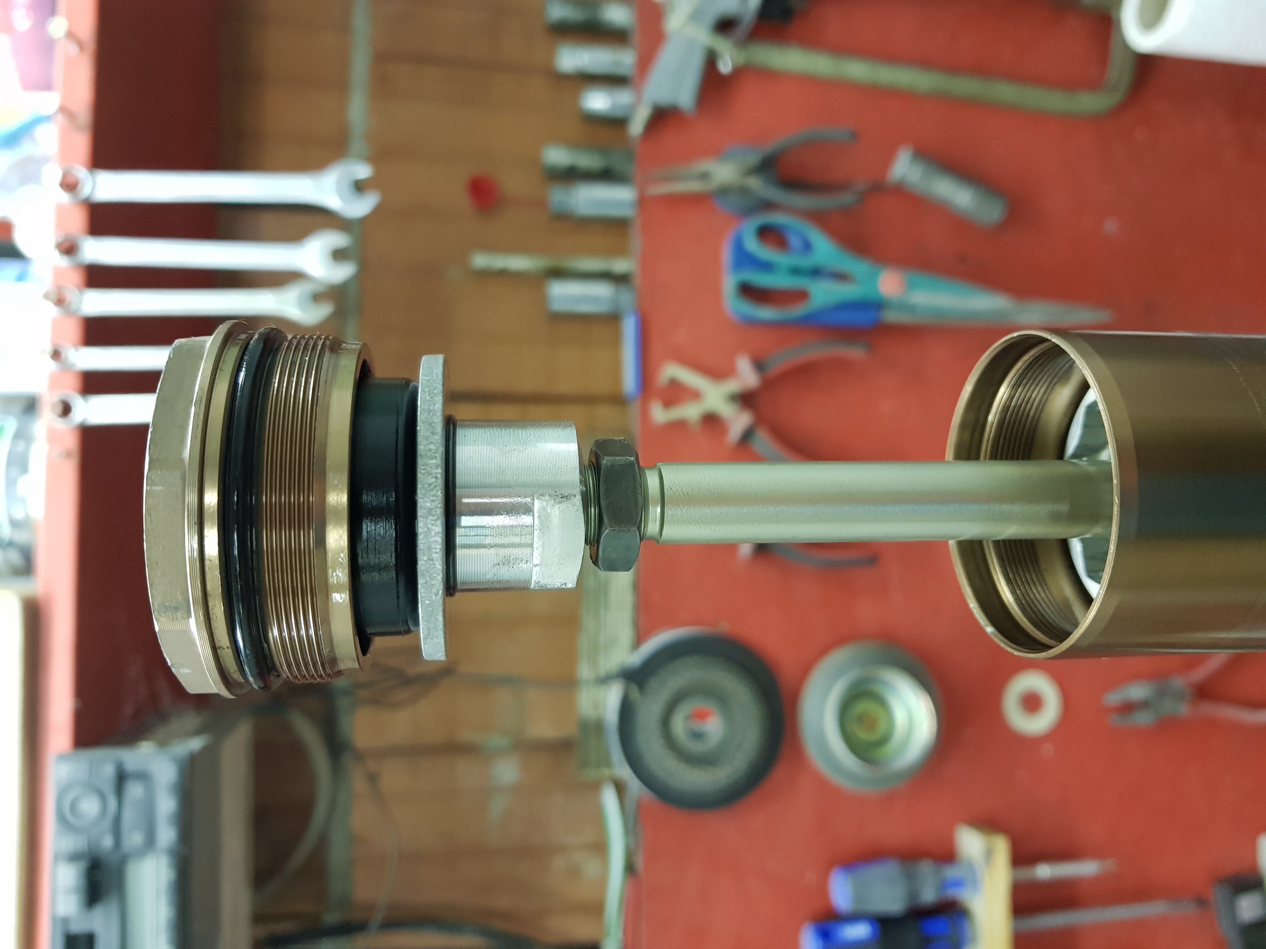 Danach kommt wieder Spezial Werkzeug zum einsatz und die feder spannende Hülse wird aus dem Standrohr gedreht. Danach können dann alle teile einfach rausgeschüttet (bitte auffangen)werden.