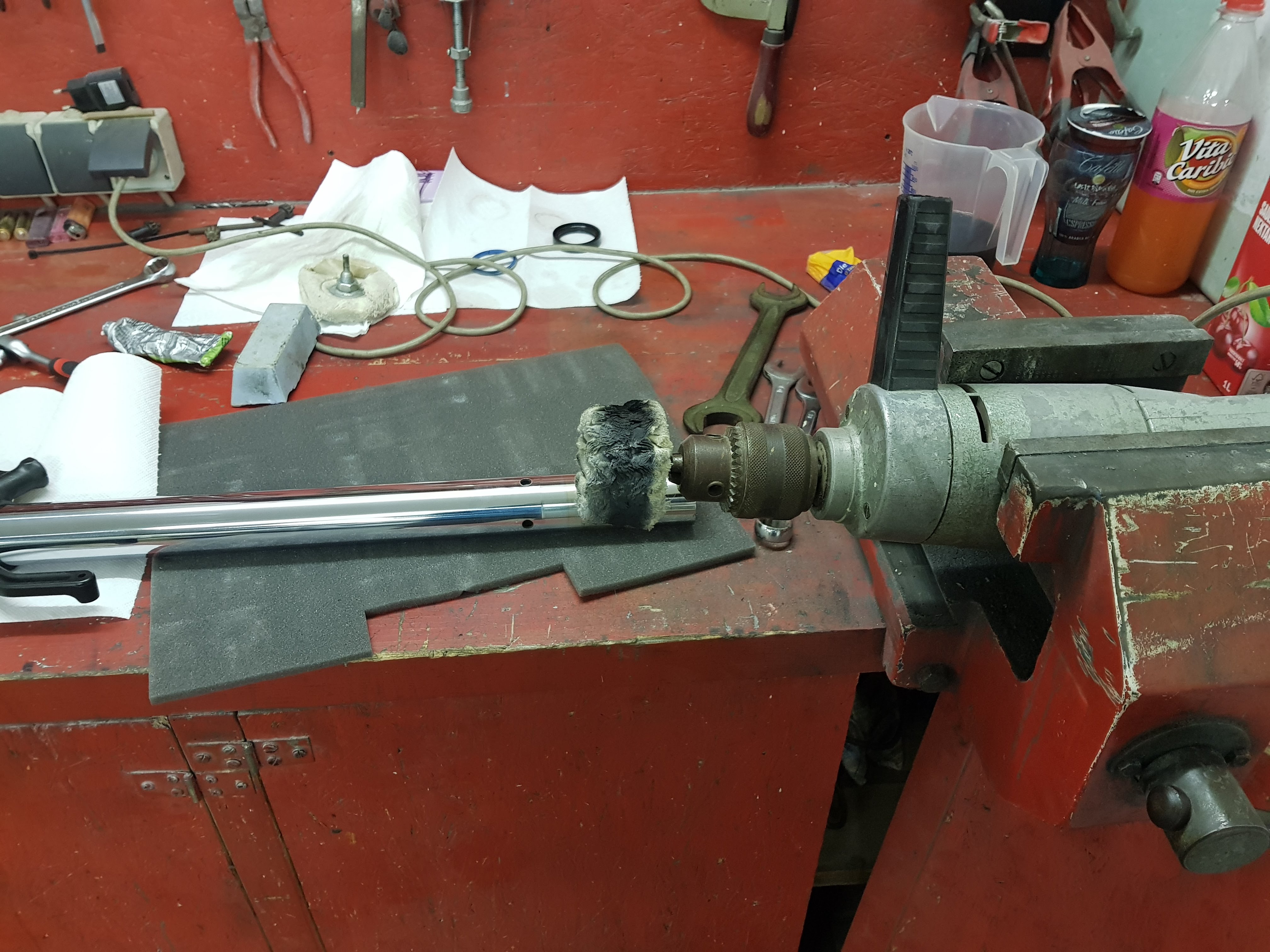 Da meine Rohre Kratzer aufwiesen, aufgrund eines Kleinen Dates im Kies (mein Vorgänger) habe ich diese mit einer hoch professionellen Maschine poliert :-D