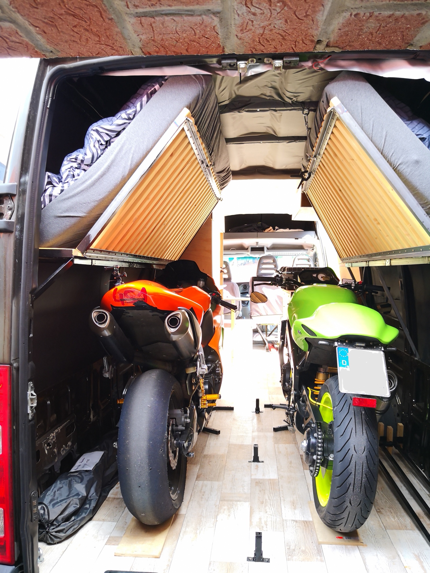 ja das ist natürlich Luxus Platz pur, aber sowas würd ich nicht gerne im Alltag fahren wollen. Die umsetzung mit den Betten und den Bikes darunter top
