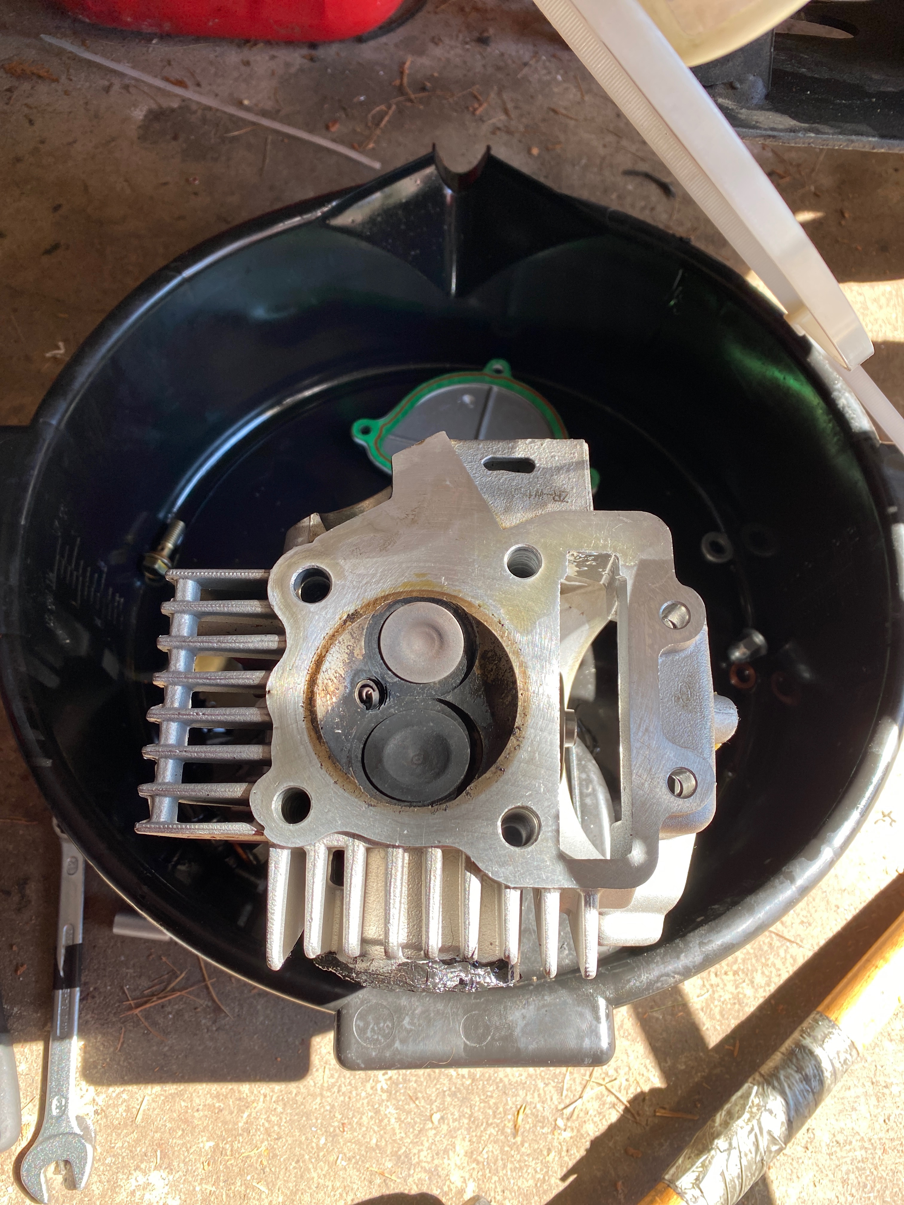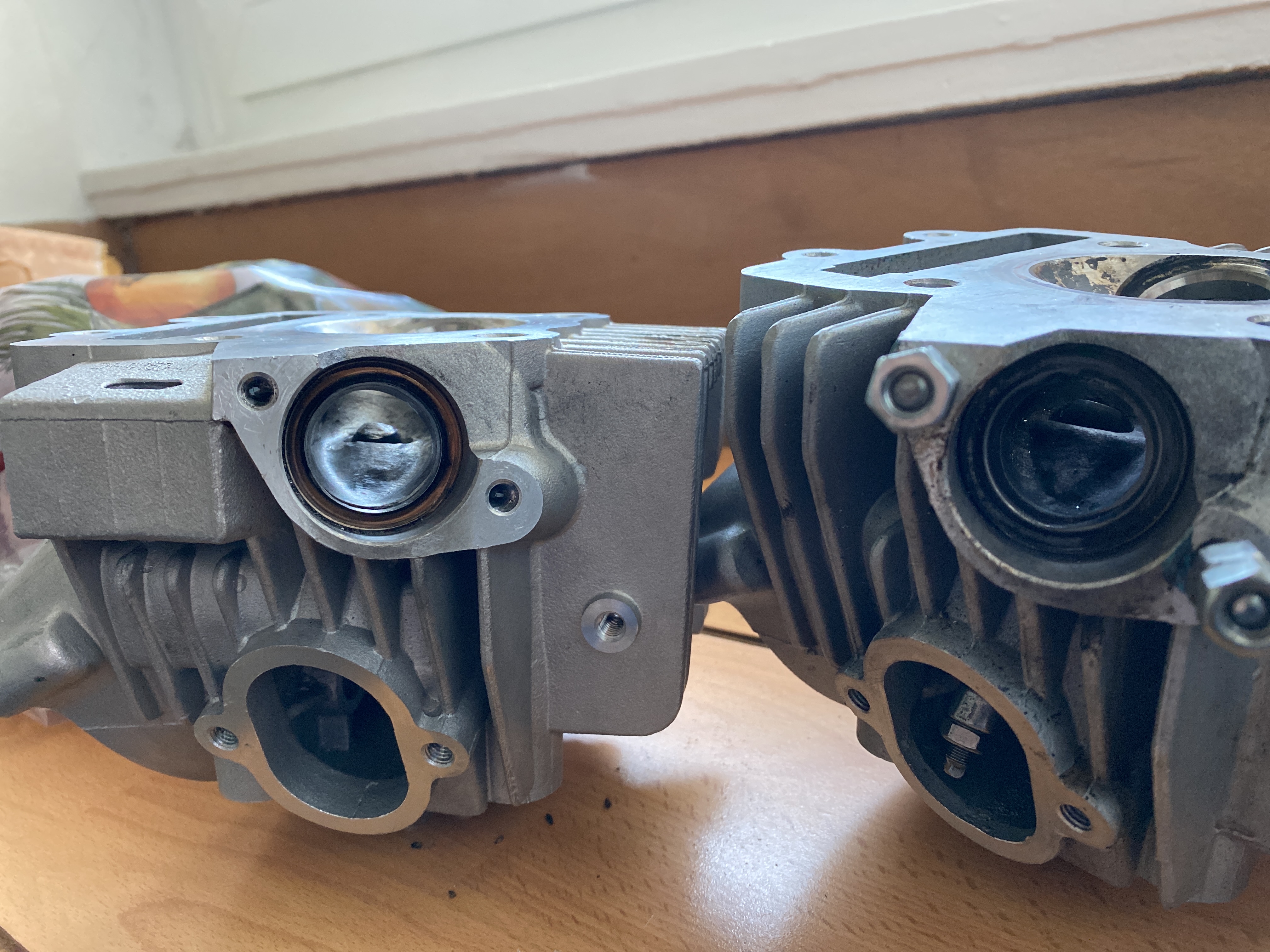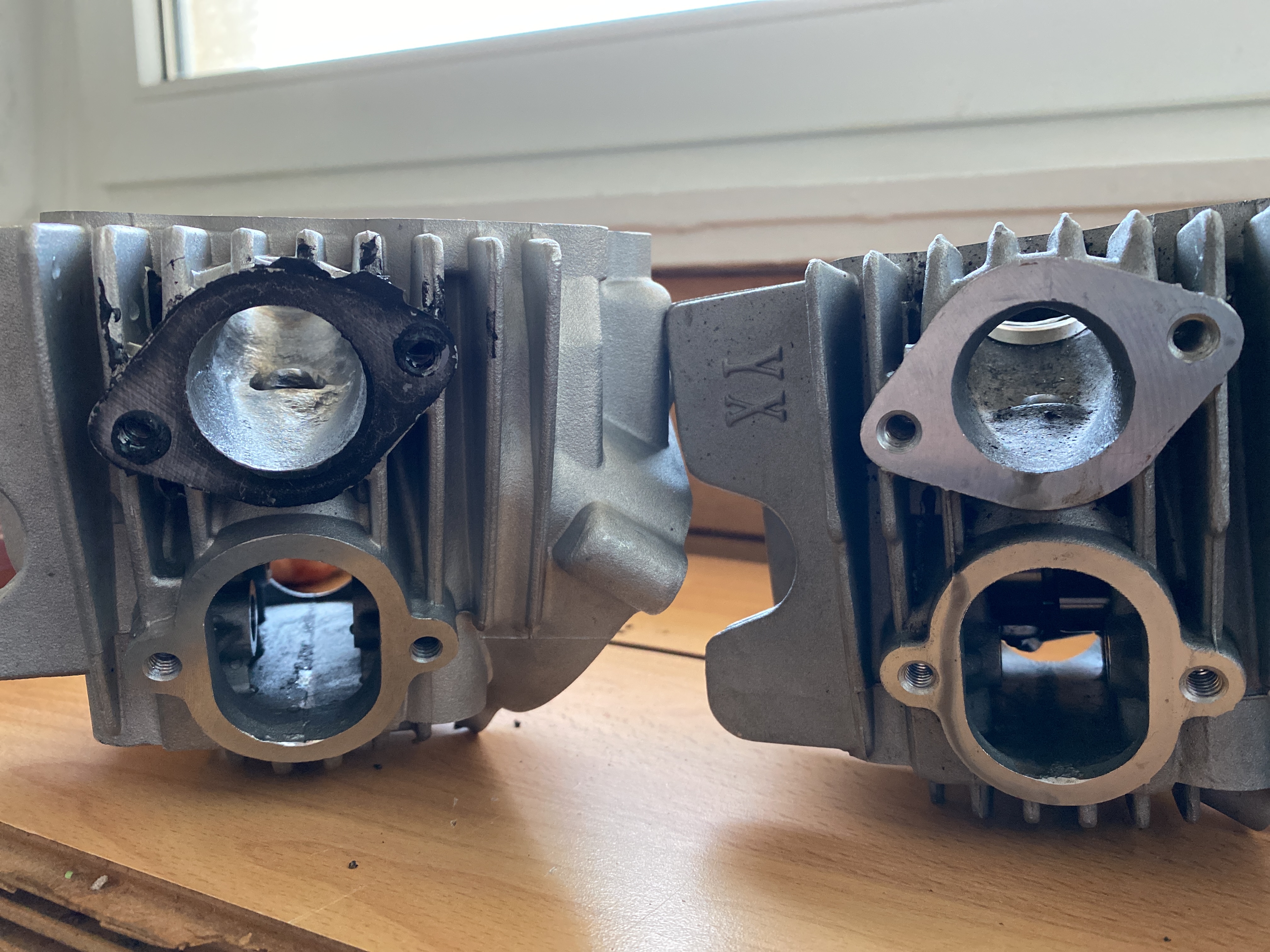 Beim Aufräumen ist mir der Dremel aus der Hand gerutscht. Mitten in den Auslasskanal. Und weil ein Unglück ja selten allein kommt auch noch in den Brennraum und in den Einlass :D