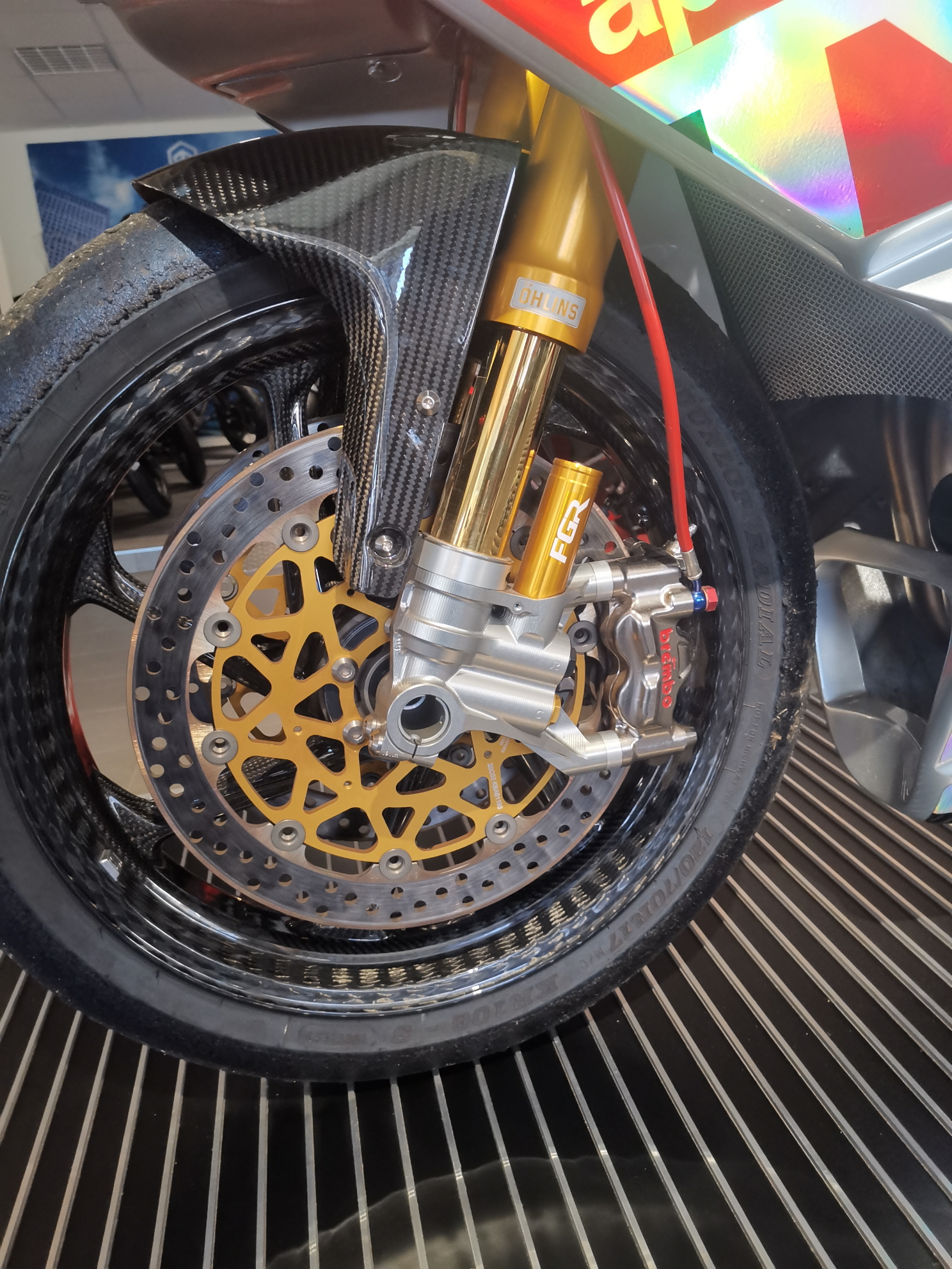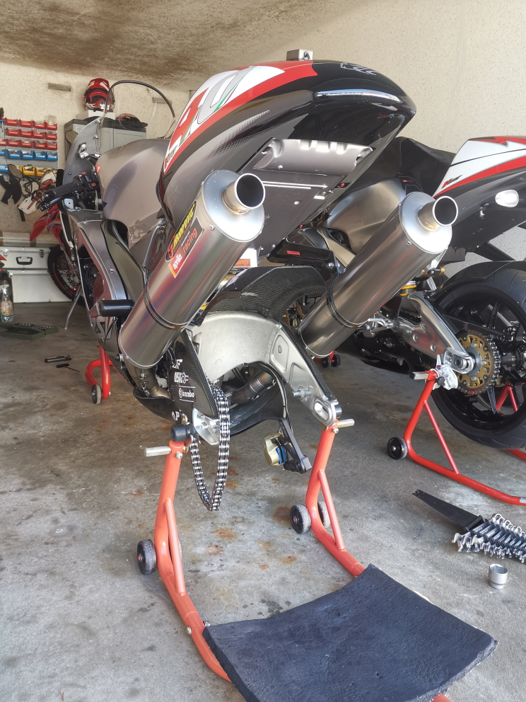 Alles vom Feinsten (Thyssen-Krupp, Öhlins, Brembo, Akrapovic, ... etc.) und sauber gemacht
