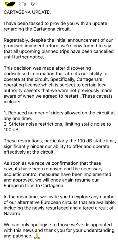 Re: Circuito Cartagena vorübergehend geschlossen!