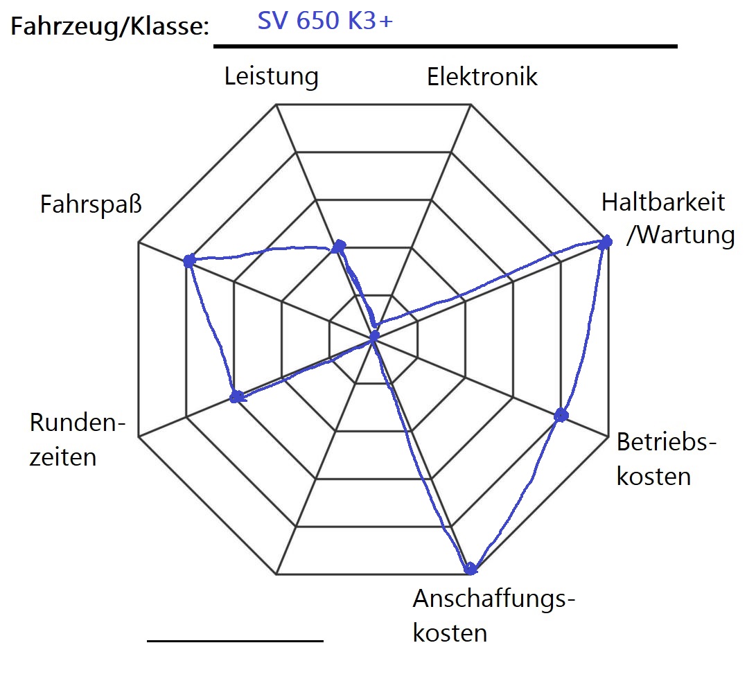 Ha! Und ich dachte schon, ich hätte die Tendenz zum Analytischen. Famose Idee, eigentlich. Nur Haltbarkeit und Wartung, da wird n>>1 sein müssen. Das mit den Rundenzeiten würde ich so interpretieren, dass sie einem leicht von der Hand gehen, nicht unbedingt an absoluten Werten.
