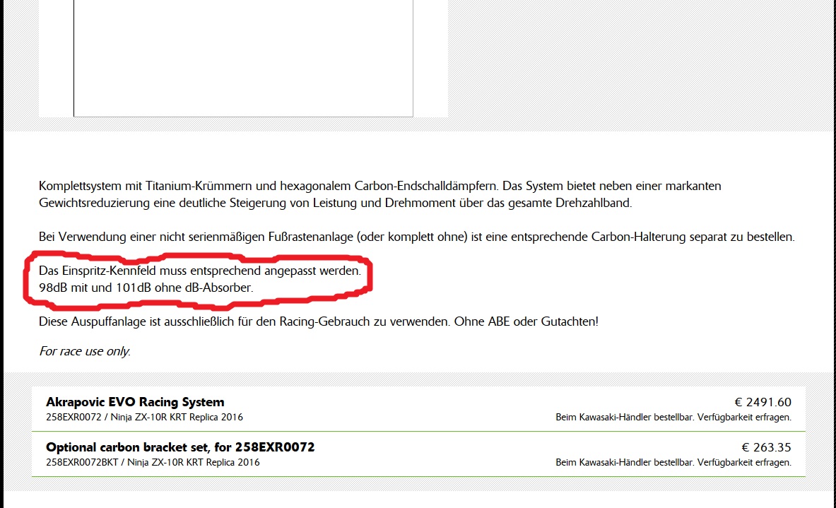 Und nur Kraftstoff anpassen ist zuwenig bei der ZX10R da sind an manchen Stellen in der Leistungskurve bis zu 40PS möglich!!!